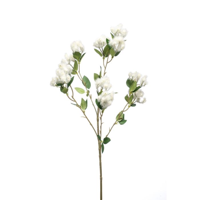 Umělá topolová CALP větev s květinami, krémová, 65cm