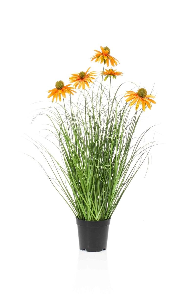 Umělá tráva třapatka SHALLA s květy, oranžová, 60cm