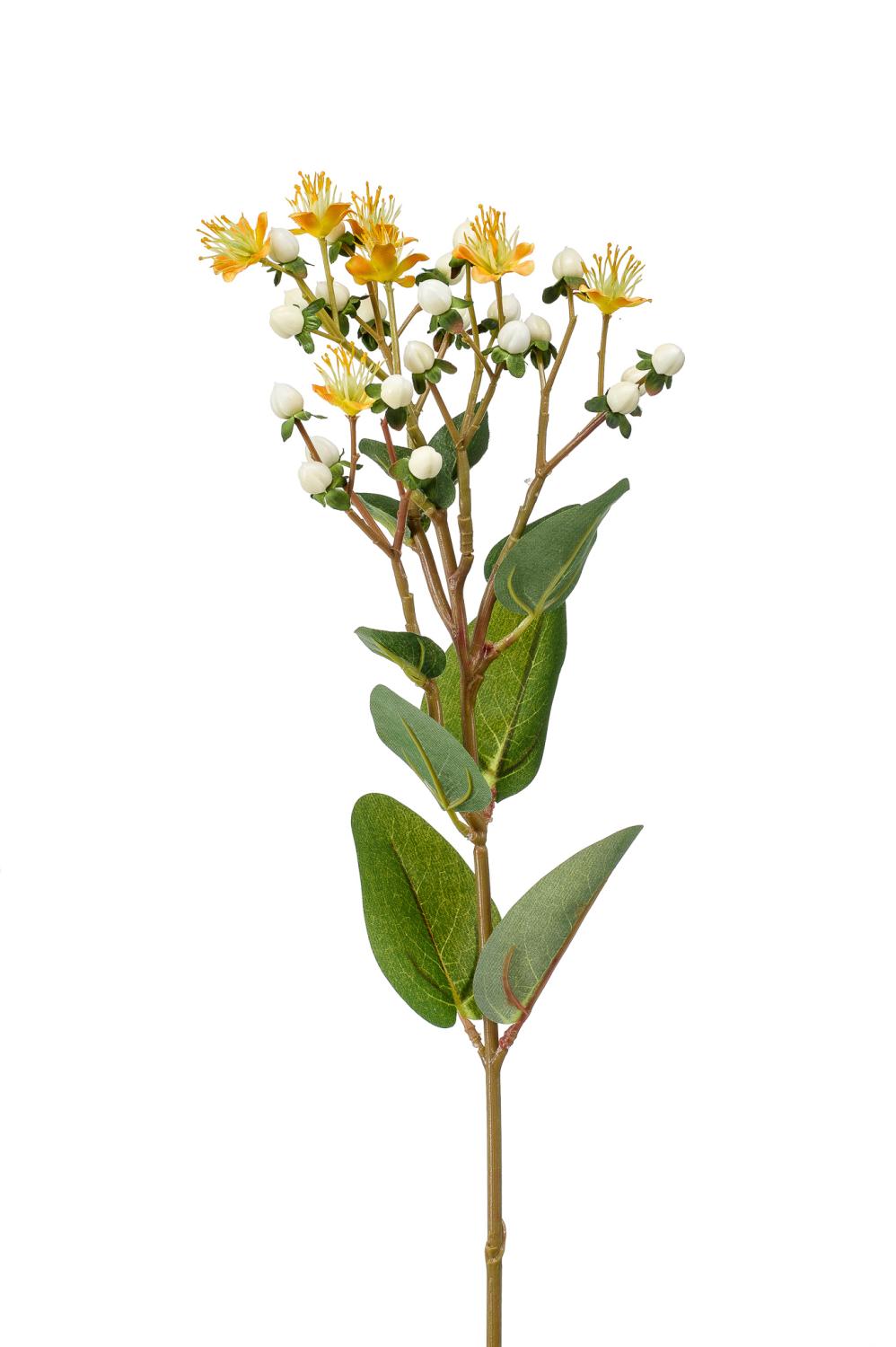 Umělá třezalka CANNO s květy, plody, žlutobílá, 65cm