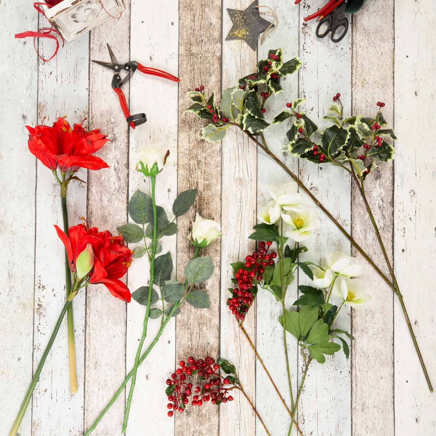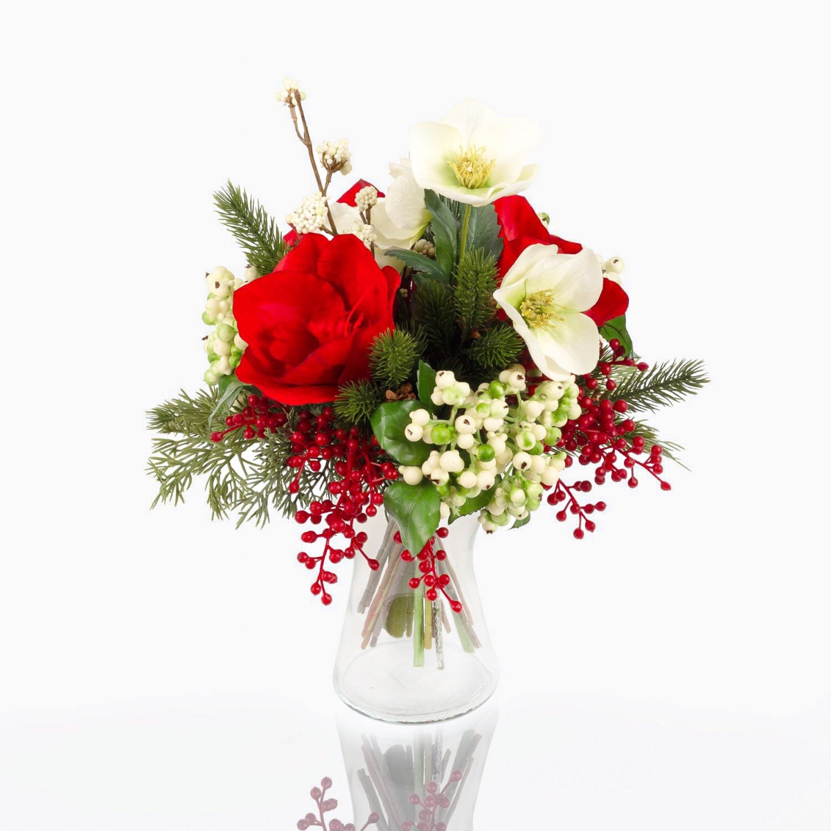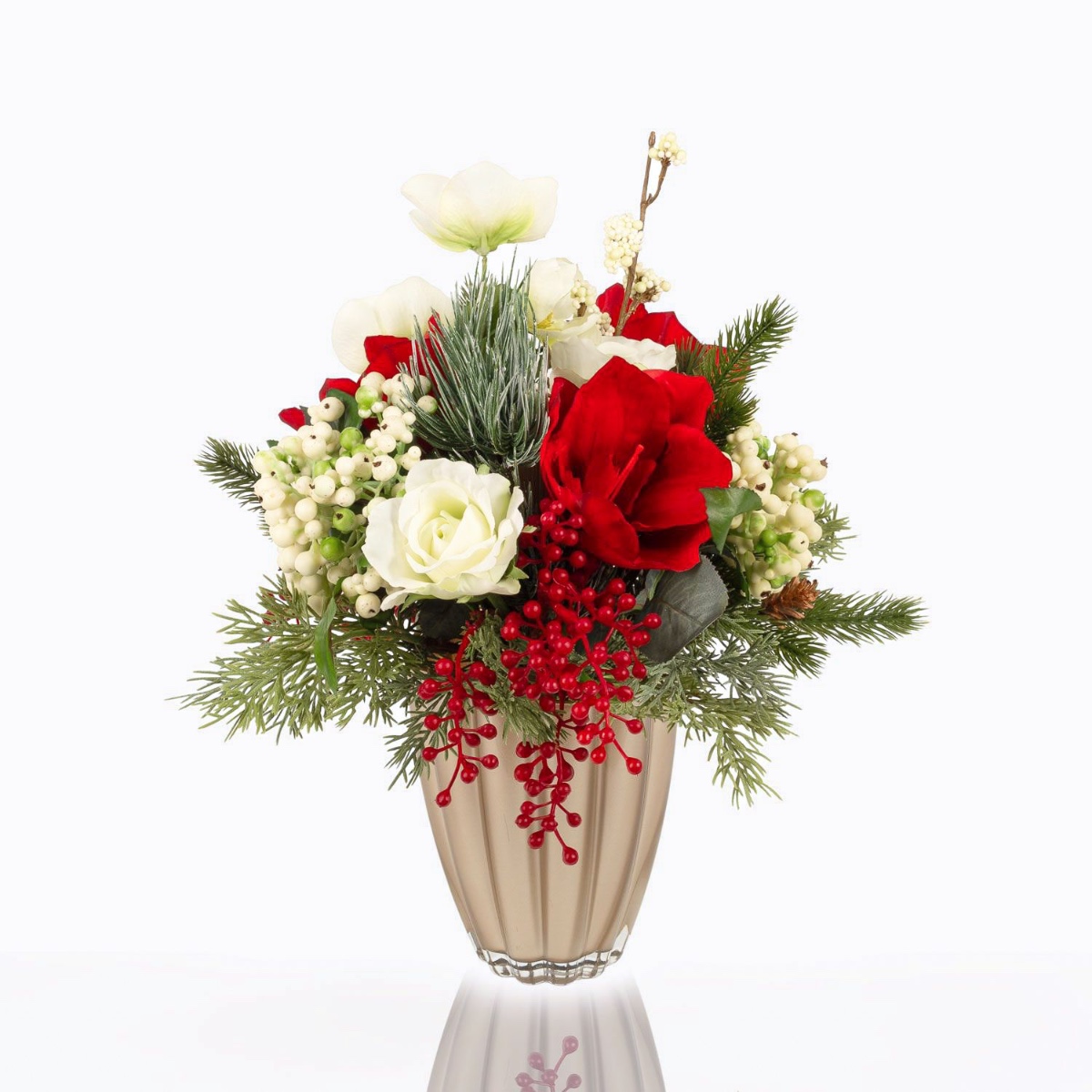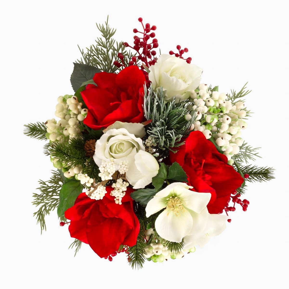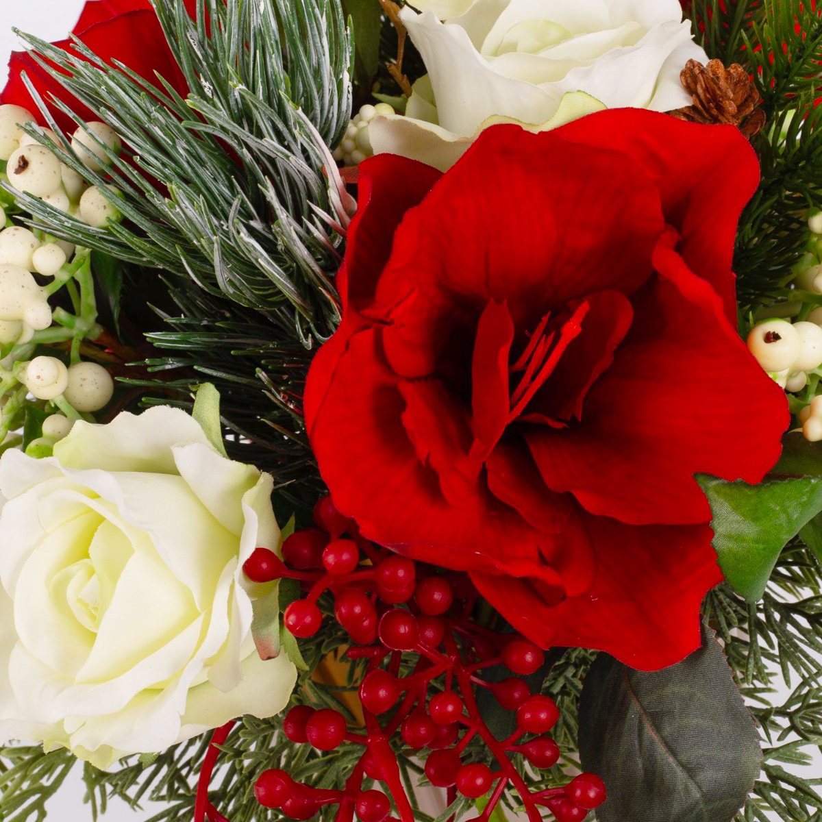 Umělá vánoční kytice KALIKIMAKA, červená-bílá, 40cm, Ø35cm