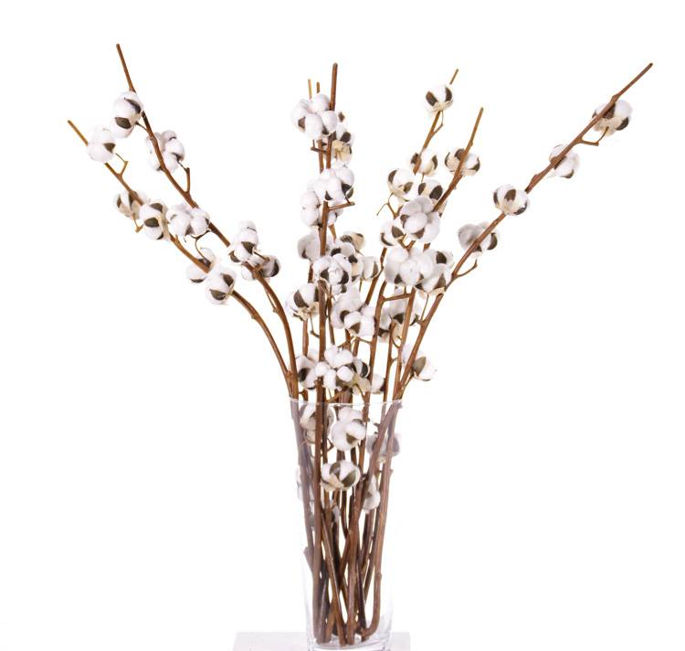 Umělá větev bavlníku NOBI s květy, bílá, 90cm
