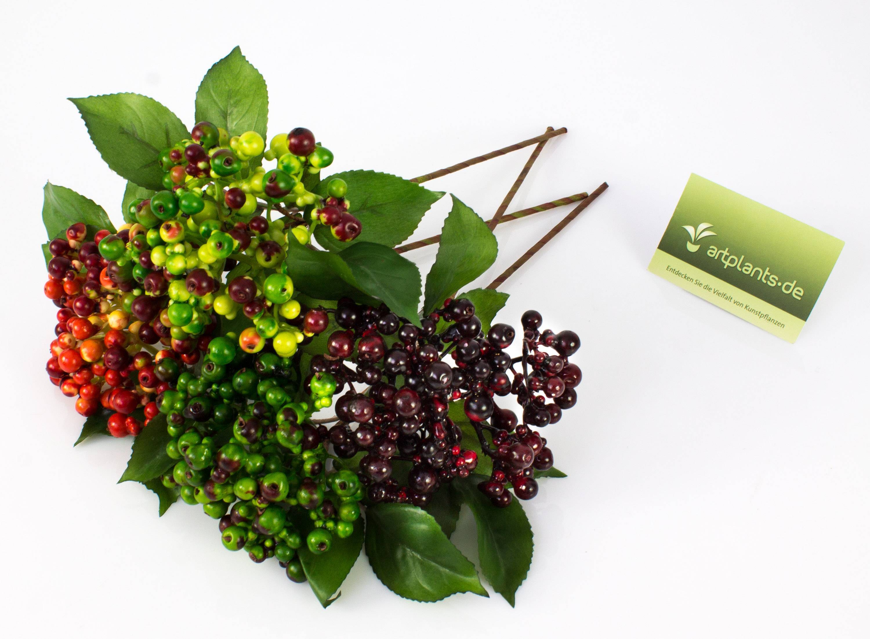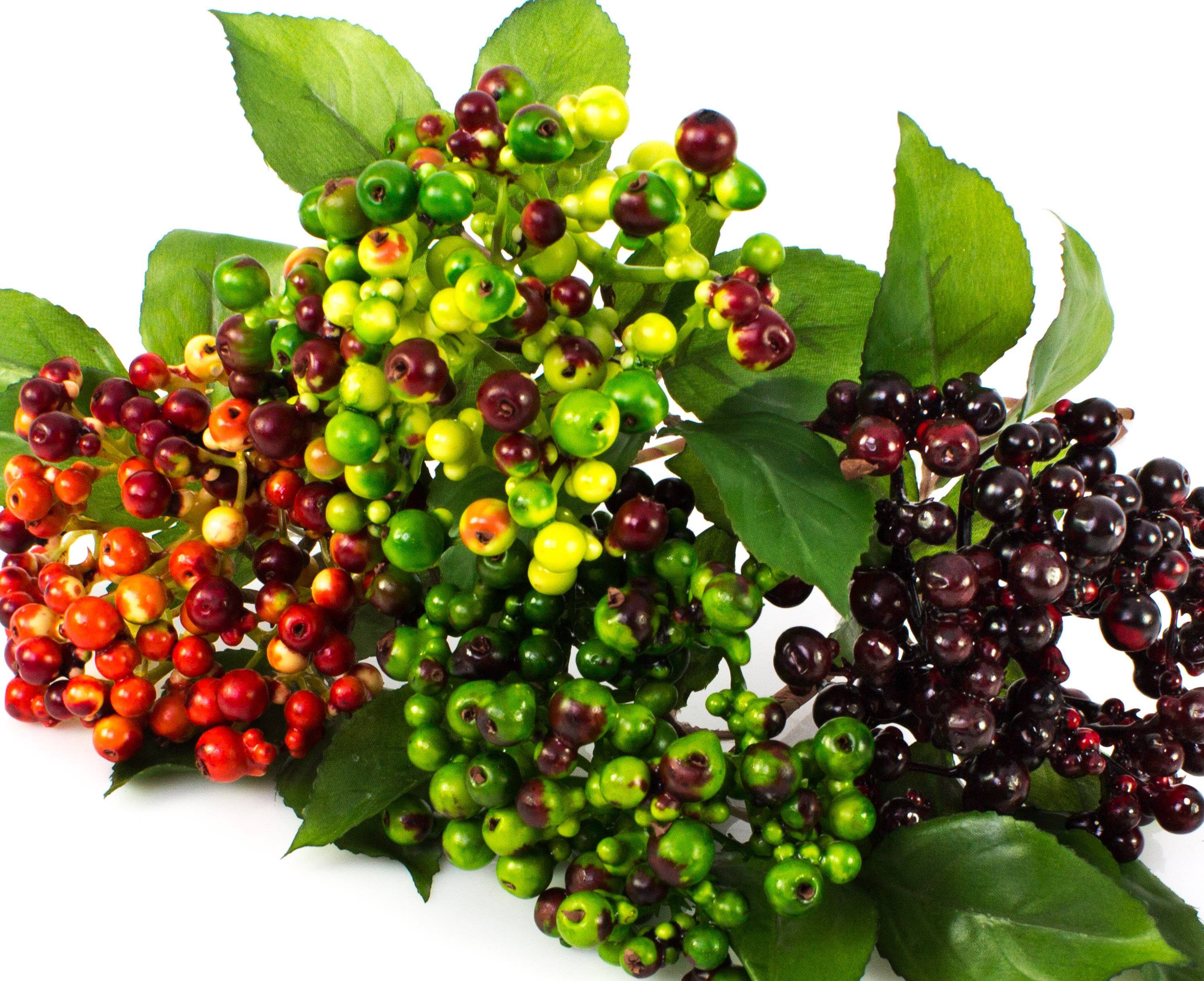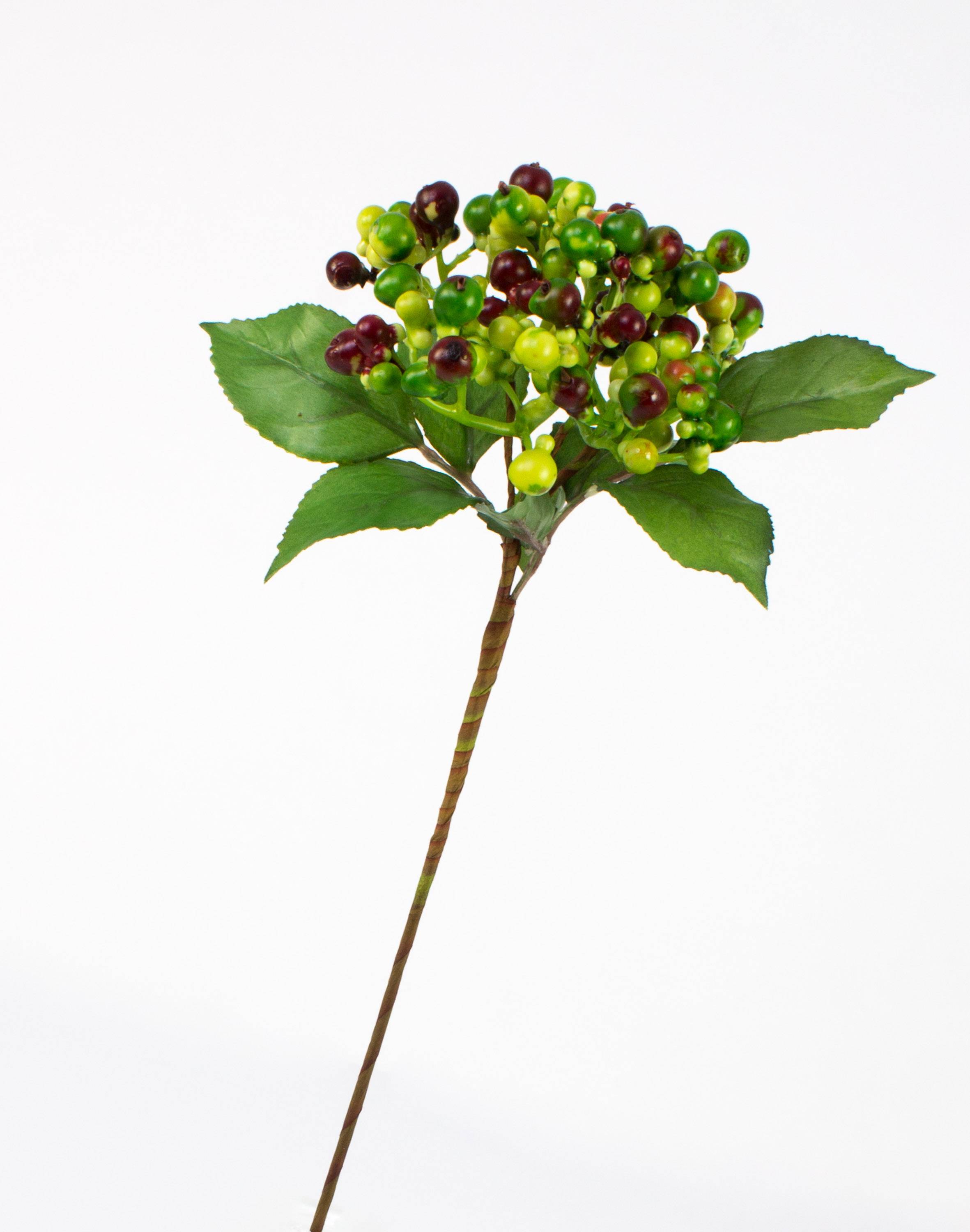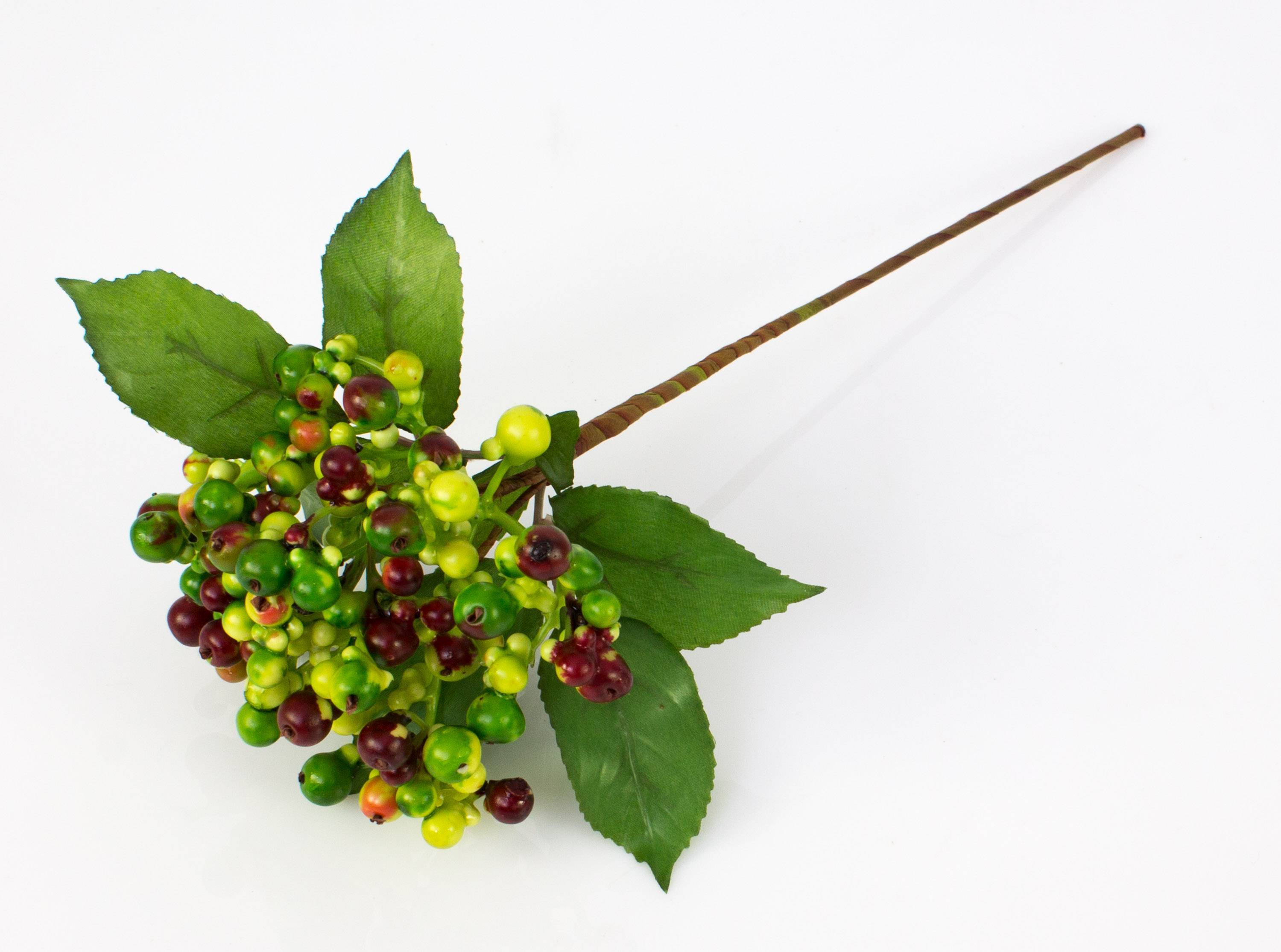 Umělá větev bezu HELMA s bobulemi, světle zeleno-červená, 30cm