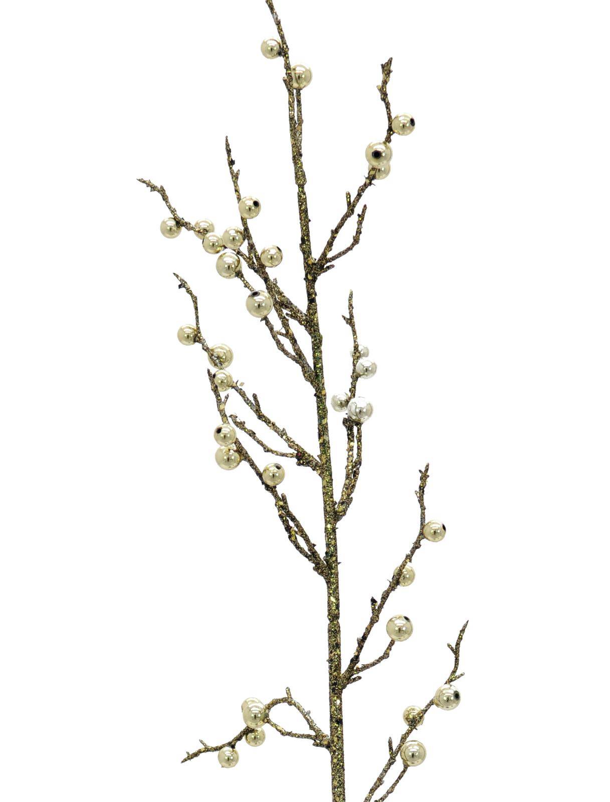 Umělá větev hlohyně FENNA, s bobulemi, třpytivý, zlatá, 85cm