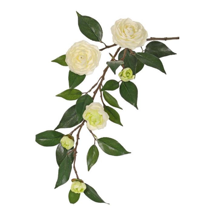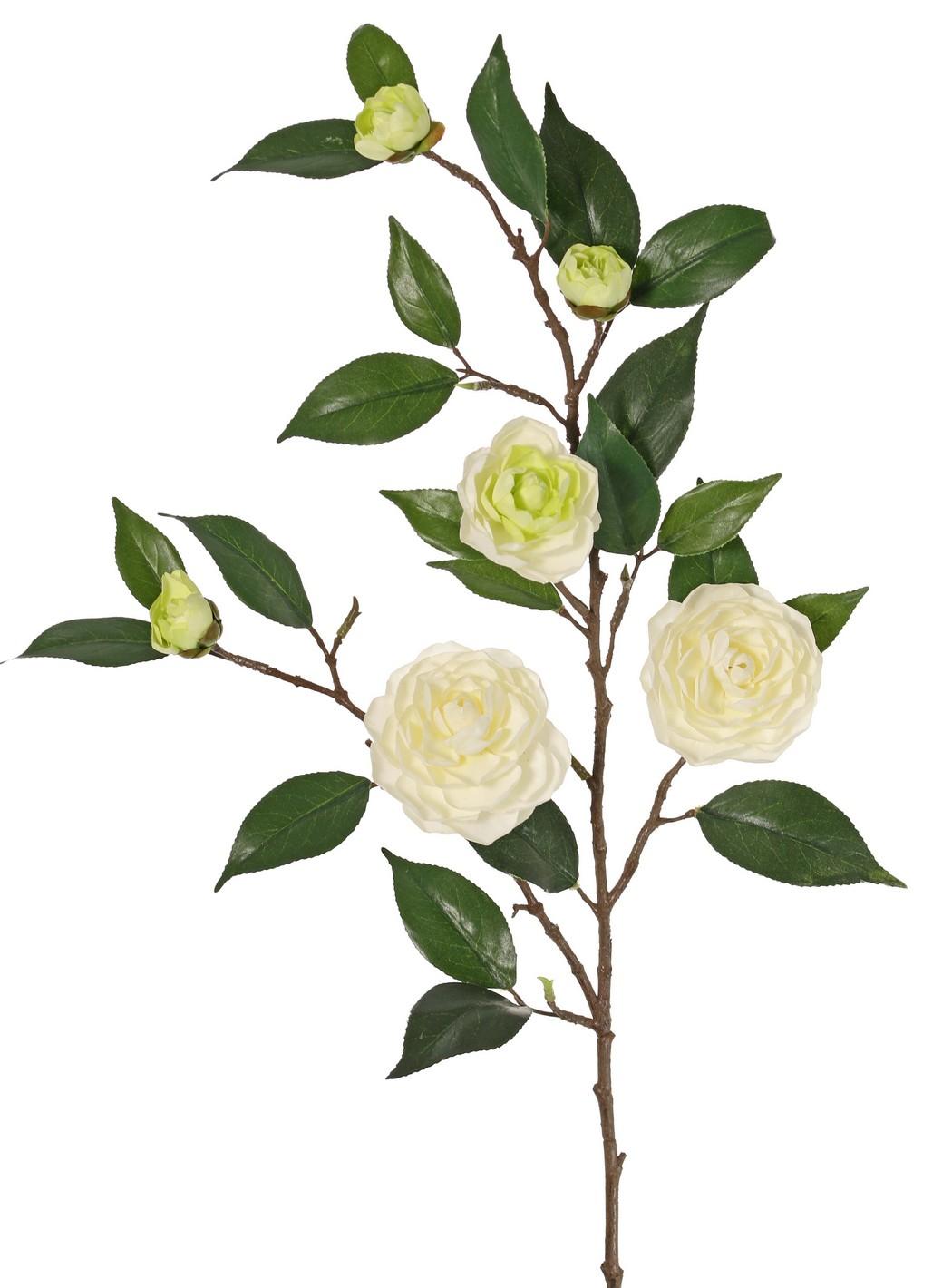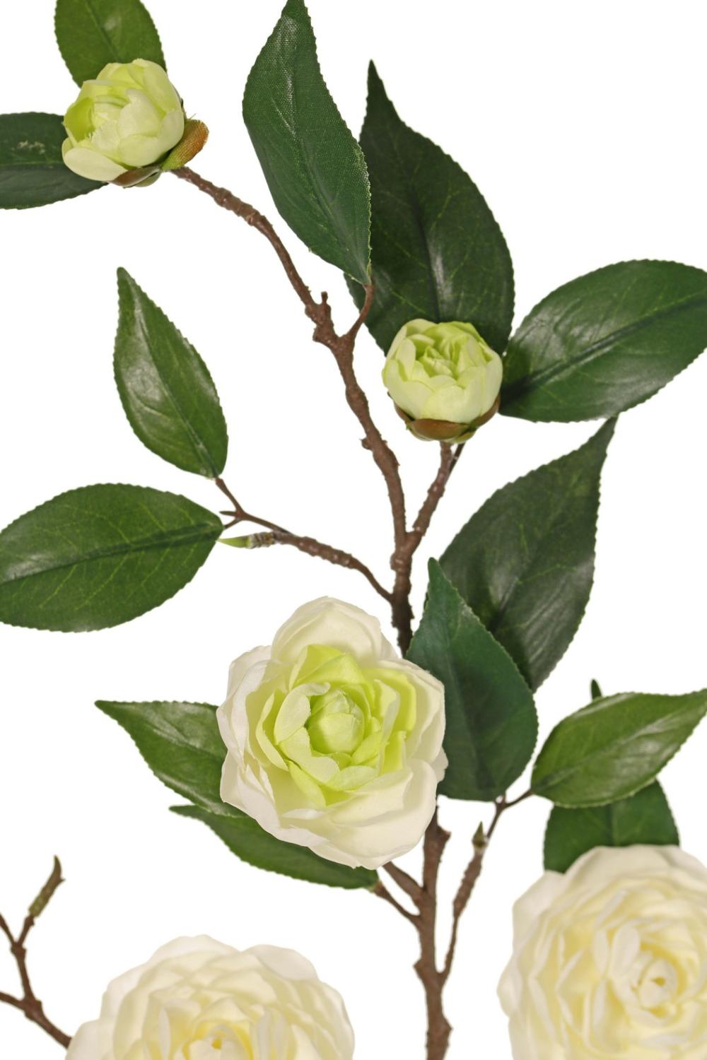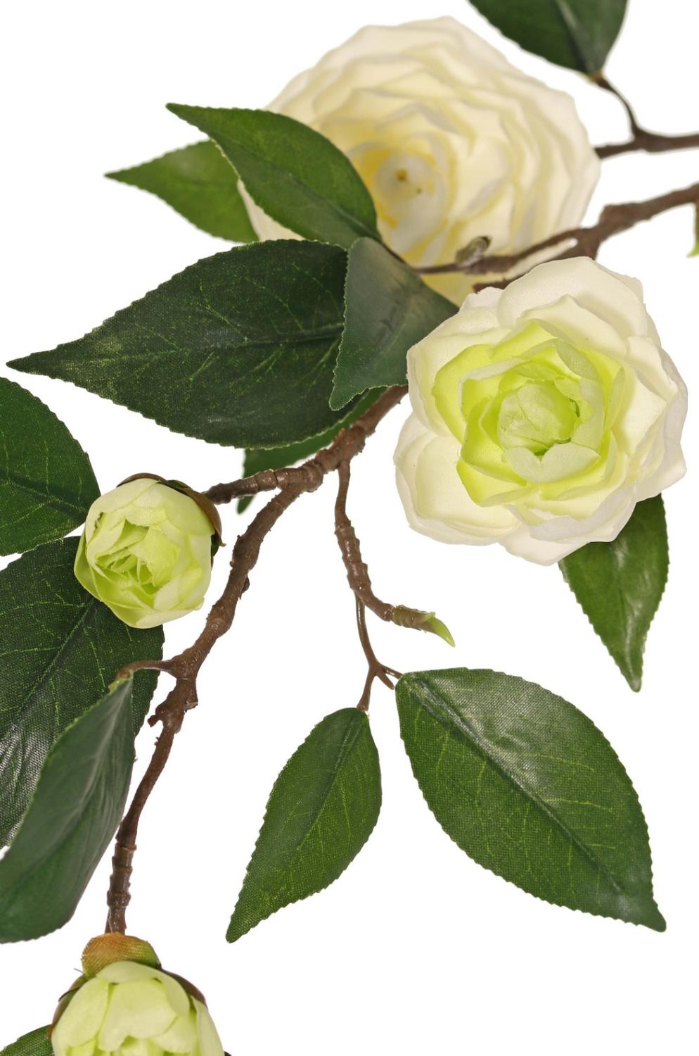 Umělá větev kamélie YARINA s květy, krémově zelená, 75cm