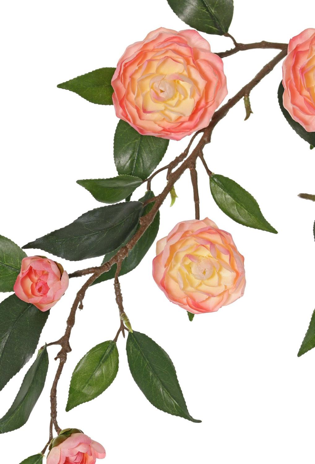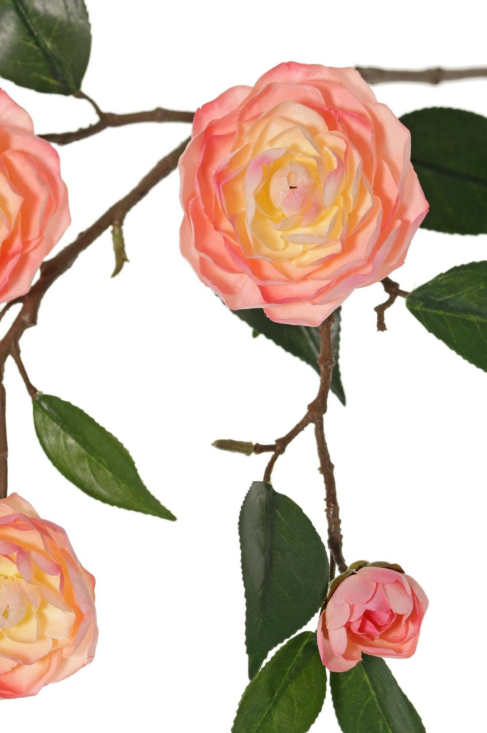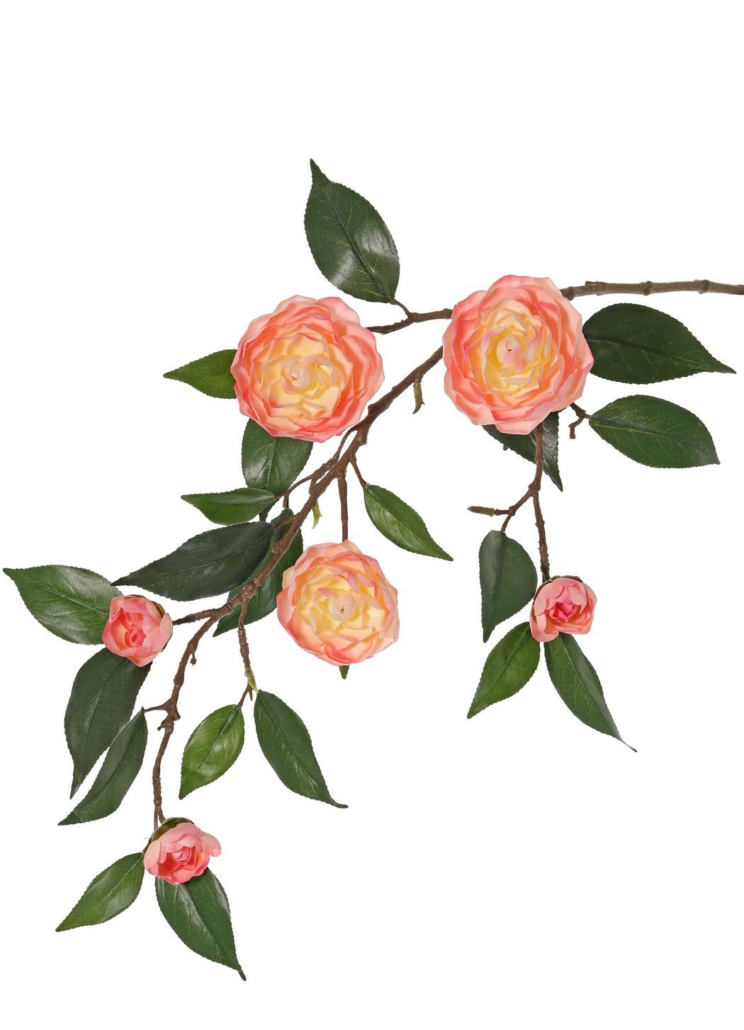 Umělá větev kamélie YARINA s květy, růžovo-krémová, 75cm