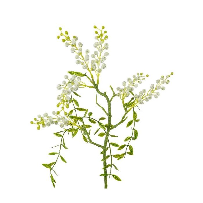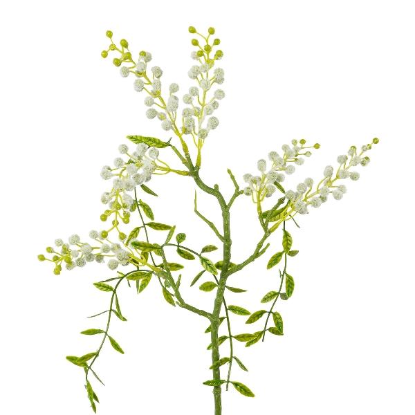 Umělá větev mimózy KRAVEL s poupaty, závěsná, bílá, 60 cm