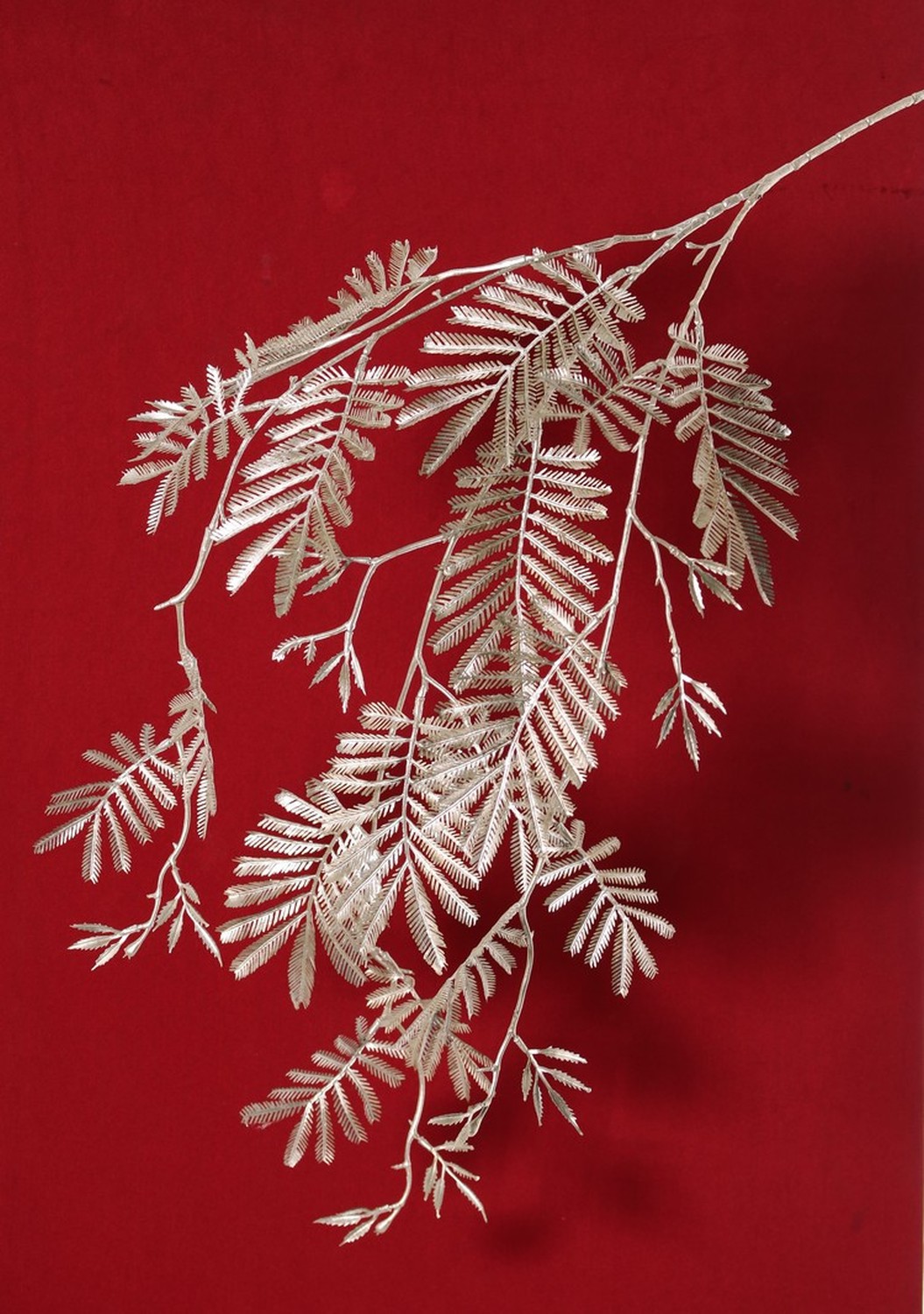 Umělá větev mimózy RENGU, stříbrná, 110cm