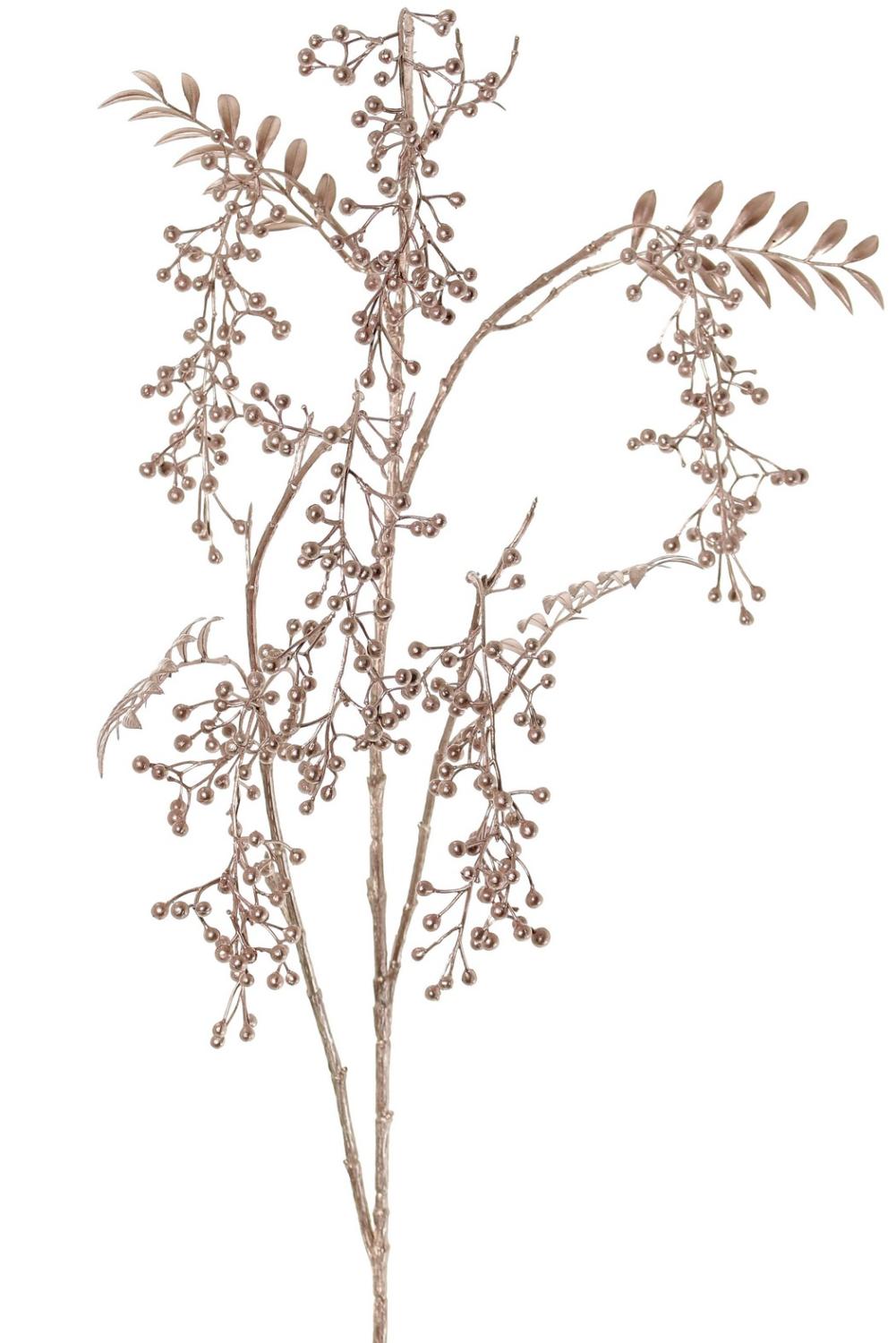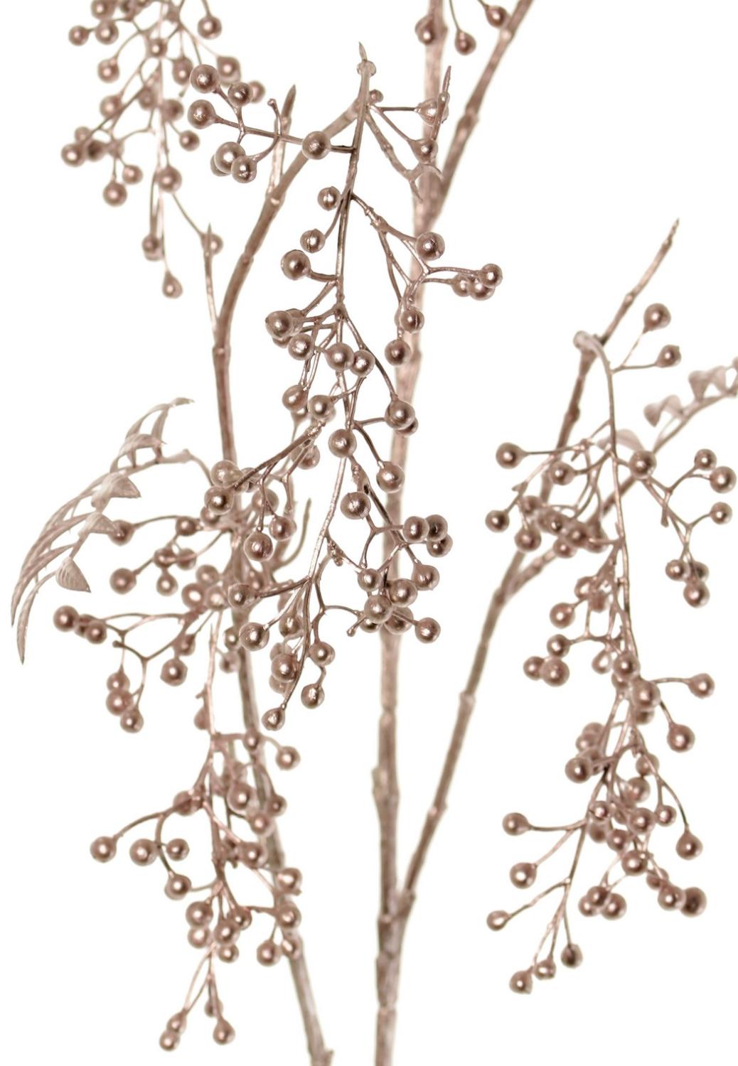 Umělá větev pepřovníku NELFHY s plody, metalická světle růžová, 125cm