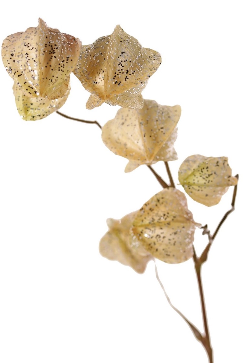Umělá větev physalis AINOS, plody, třpytky, krémová, 80cm