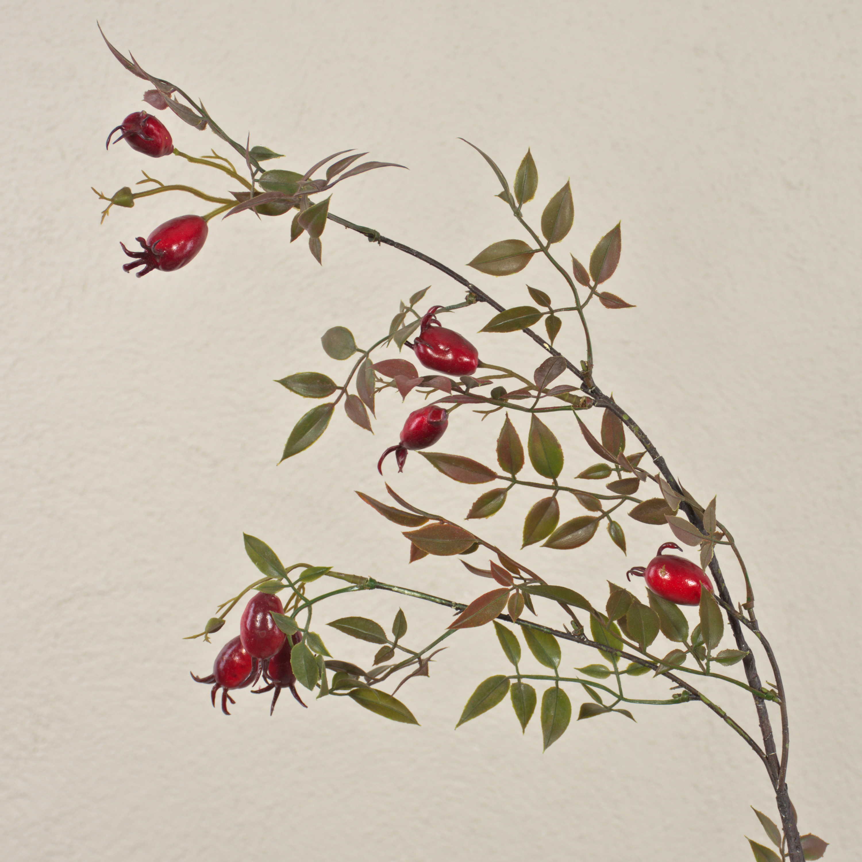 Umělá větev psí růže VARDALIA se šípky, červená, 95cm
