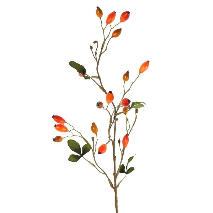 Umělá větev psí růže ZERBST se šípky, oranžovo-červená, 80cm