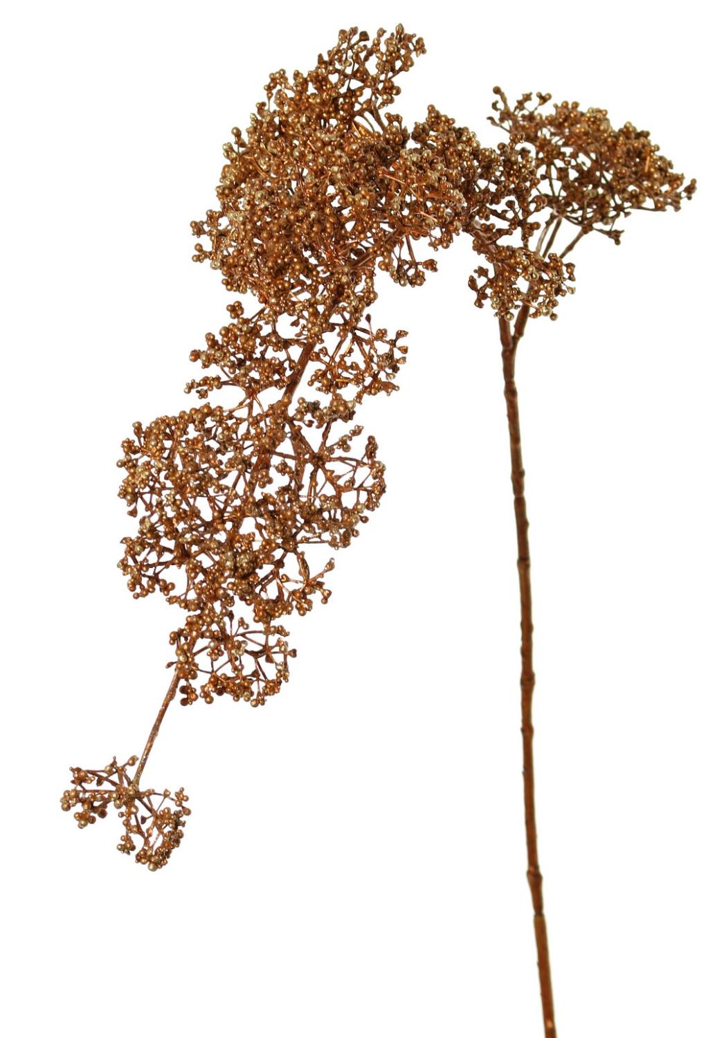 Umělá větev sněhové koule SALFHY s poupaty, měděná metalíza, 90cm