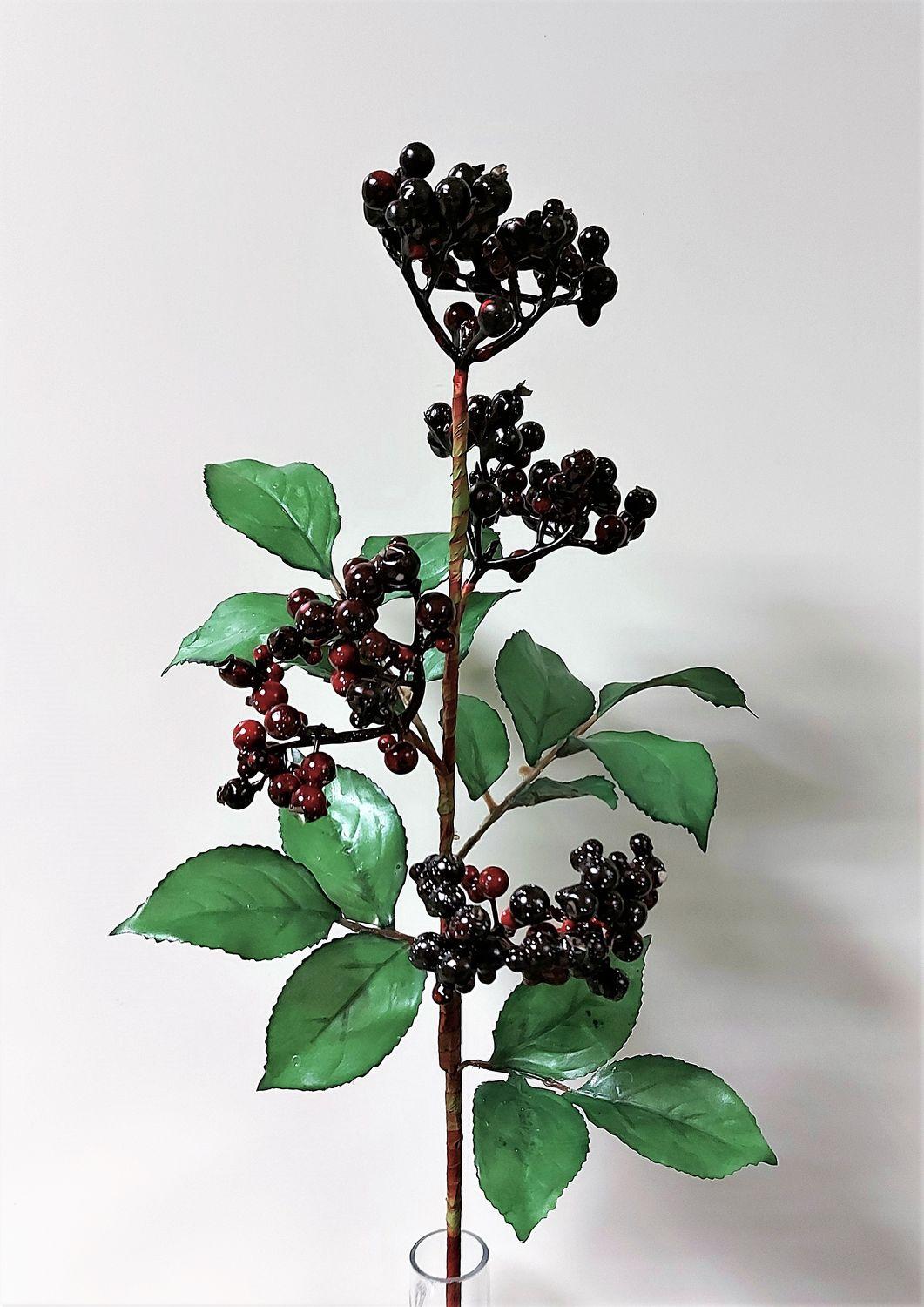 Umělá větev z černého bezu CHATANGA s plody, vínová-černá, 60cm