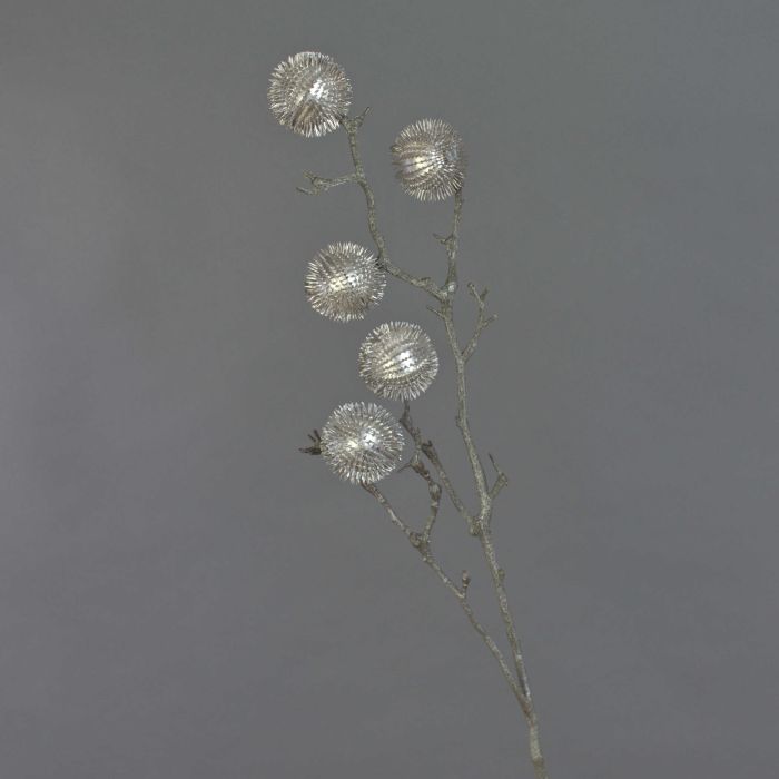 Umělá větvička bodláku ROBBY, stříbrná, 100 cm, Ø6 cm