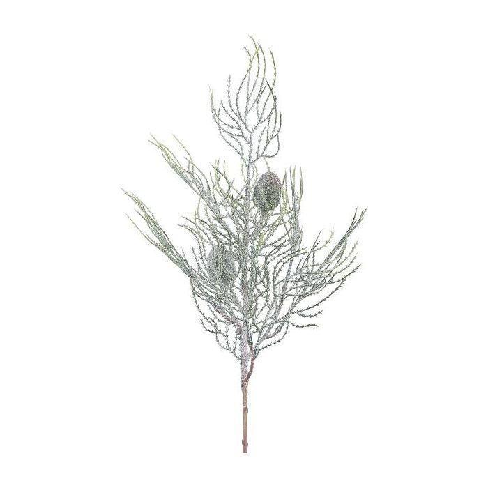 Umělá větvička cypřiše GRAVON s třpytkami, šišky, světle zeleno-šedá, 60cm