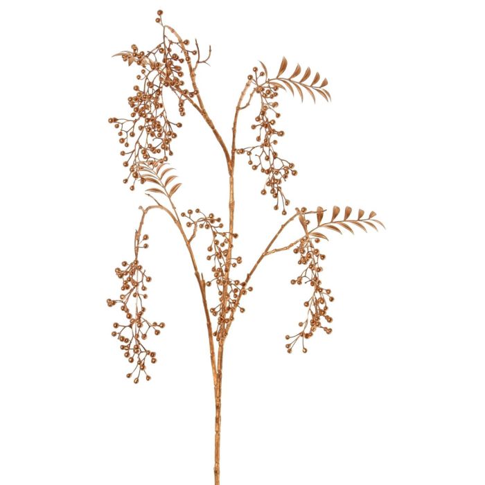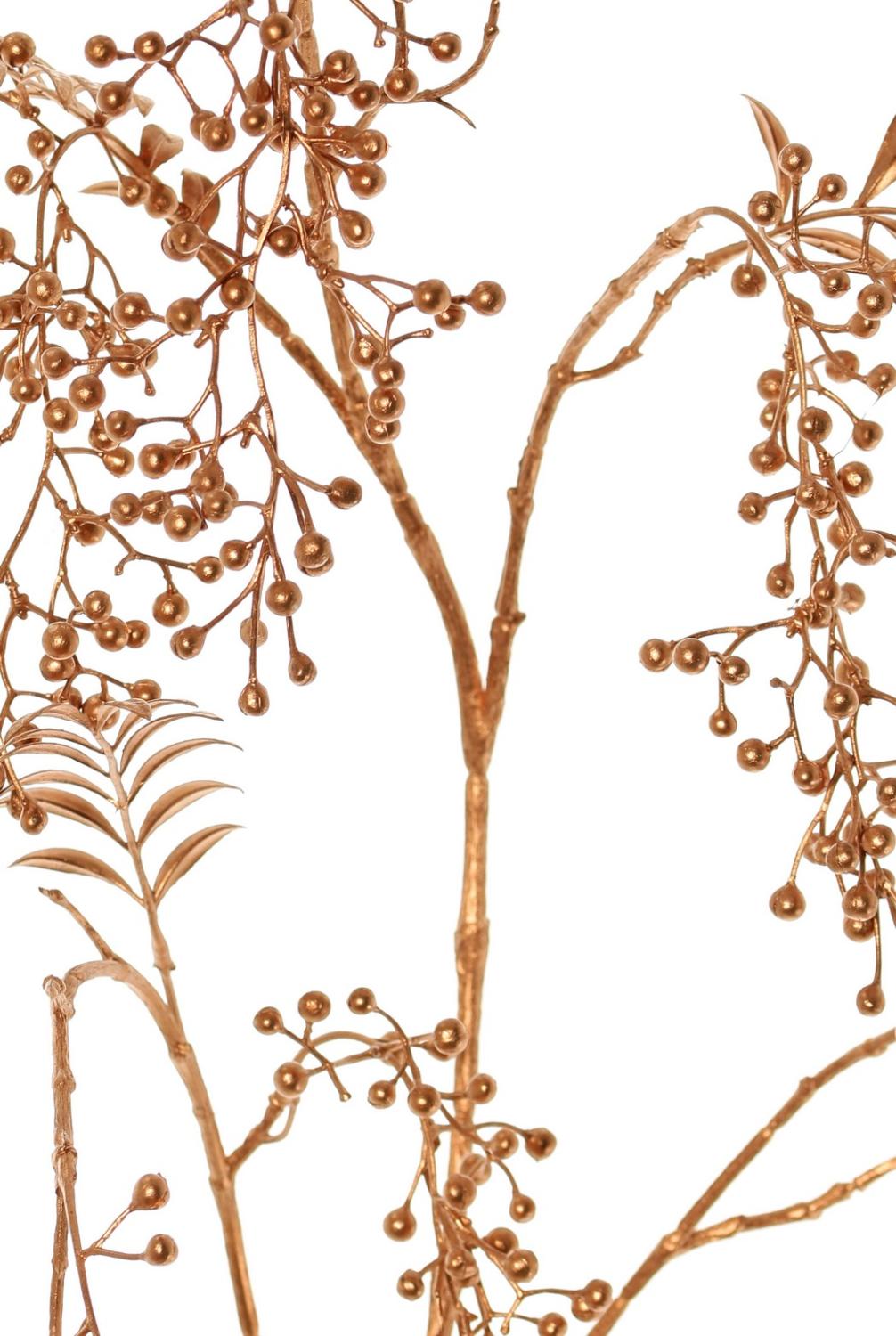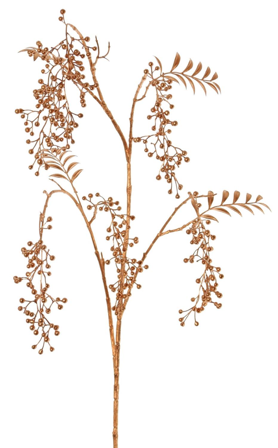 Umělá větvička pepřovníku NELFHY s bobulemi, metalická měděná, 125cm