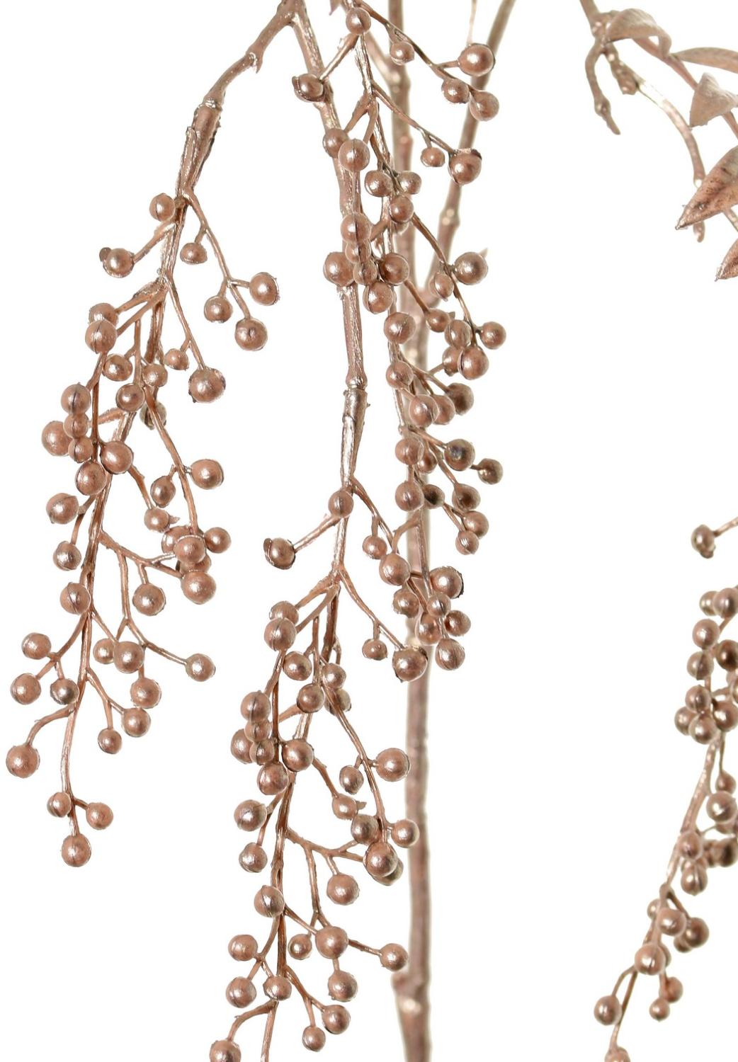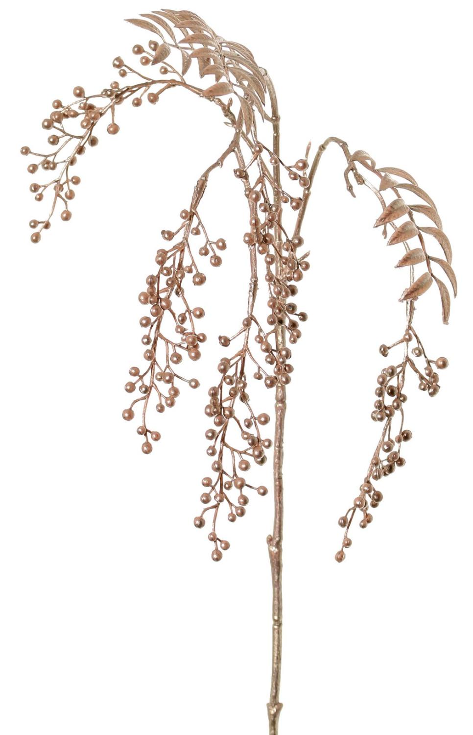 Umělá větvička pepřovníku RALFHY s bobulemi, metalická světle růžová, 80cm