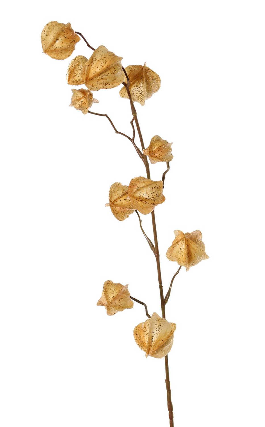 Umělá větvička physalis AINOS, plody, třpytky, béžová, 80cm