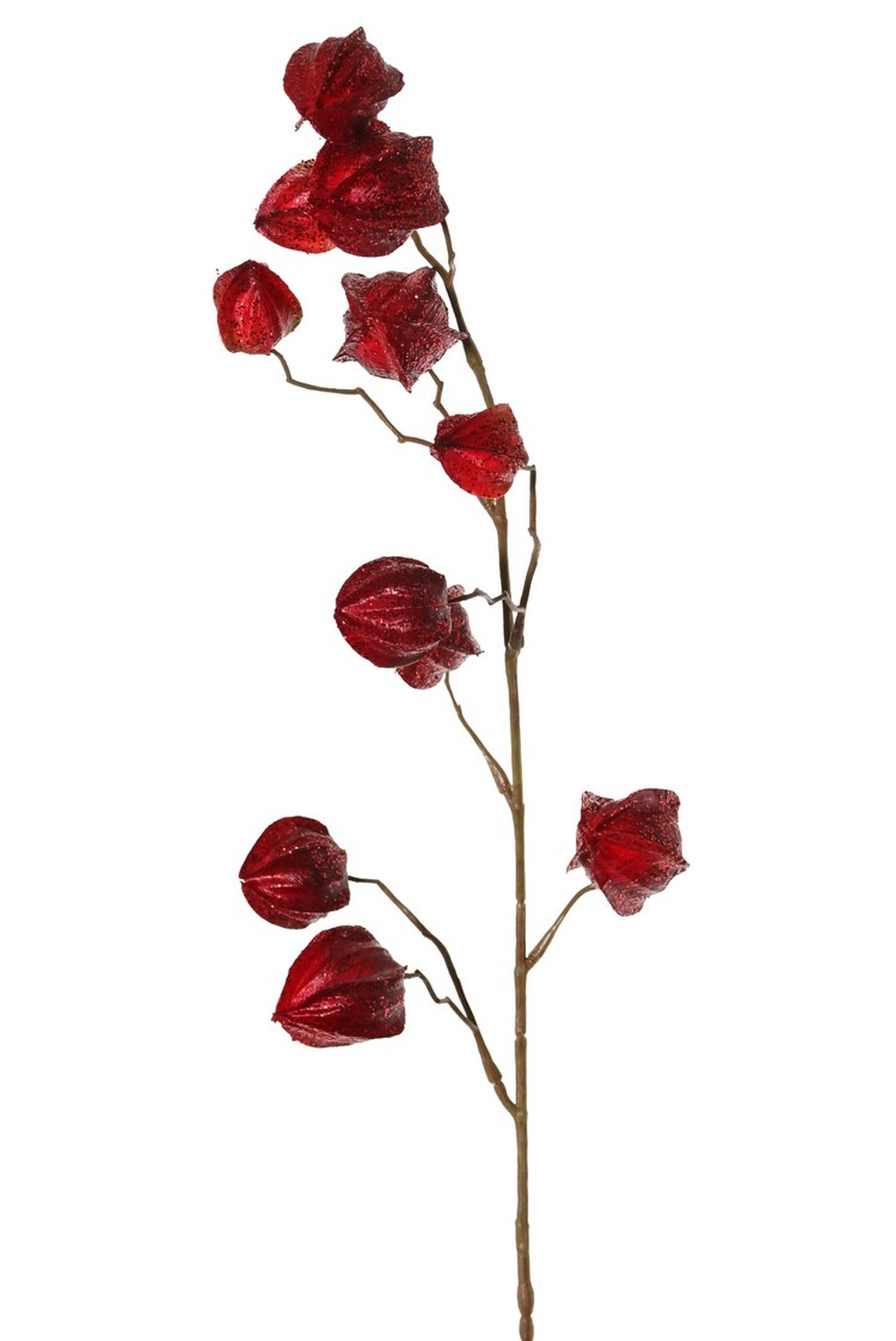 Umělá větvička physalis AINOS, plody, třpytky, vínová, 80cm