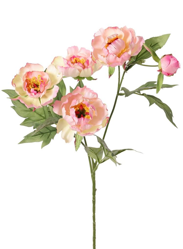 Umělá větvička pivoňky LARDUAN, Eco Collection, růžovo-bílá, 60cm, Ø7cm