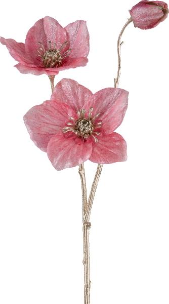 Umělá větvička vánoční růže GRIMFAL, růžová, 55cm