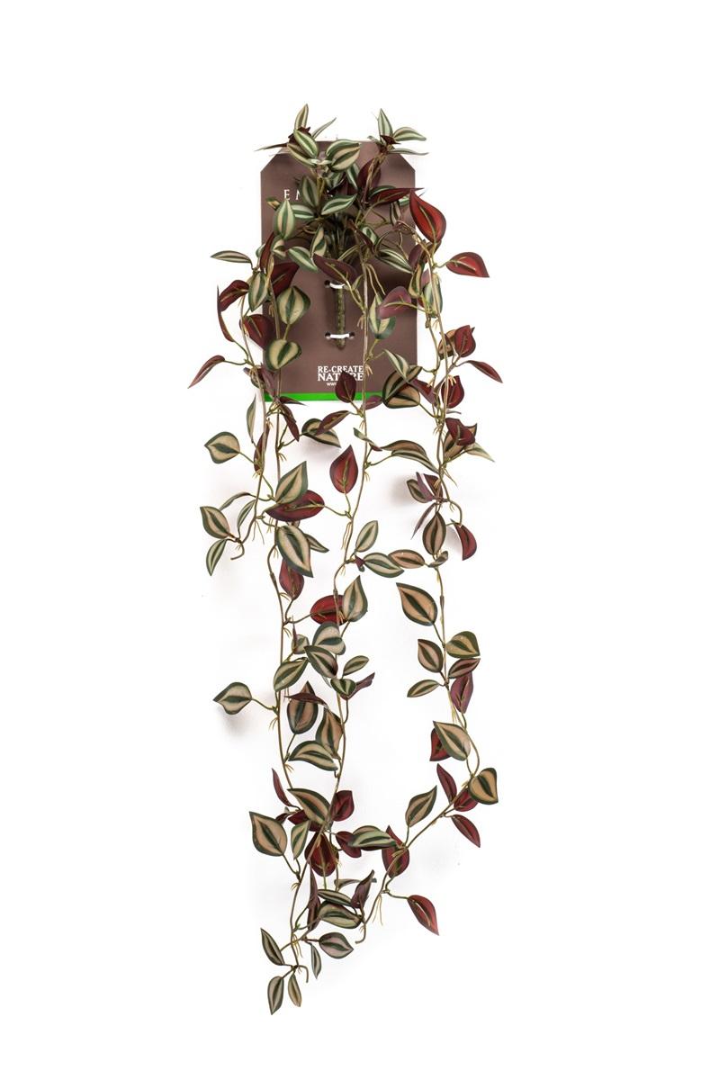 Umělá závěsná rostlina Tradescantia zebrina SAELFES na tyči, zeleno-vínově červená, 85cm