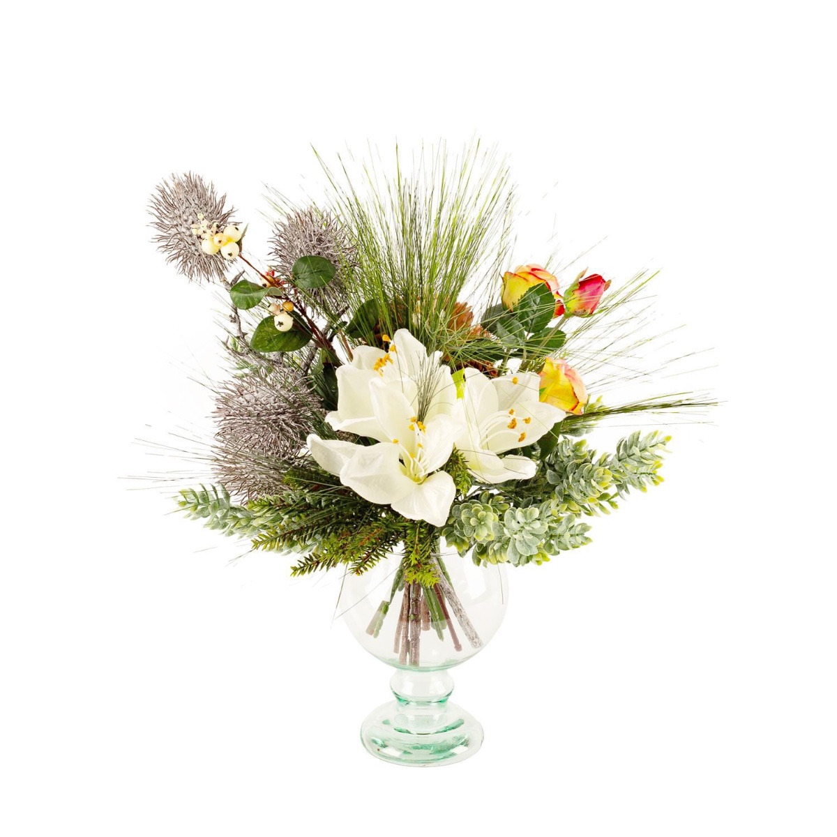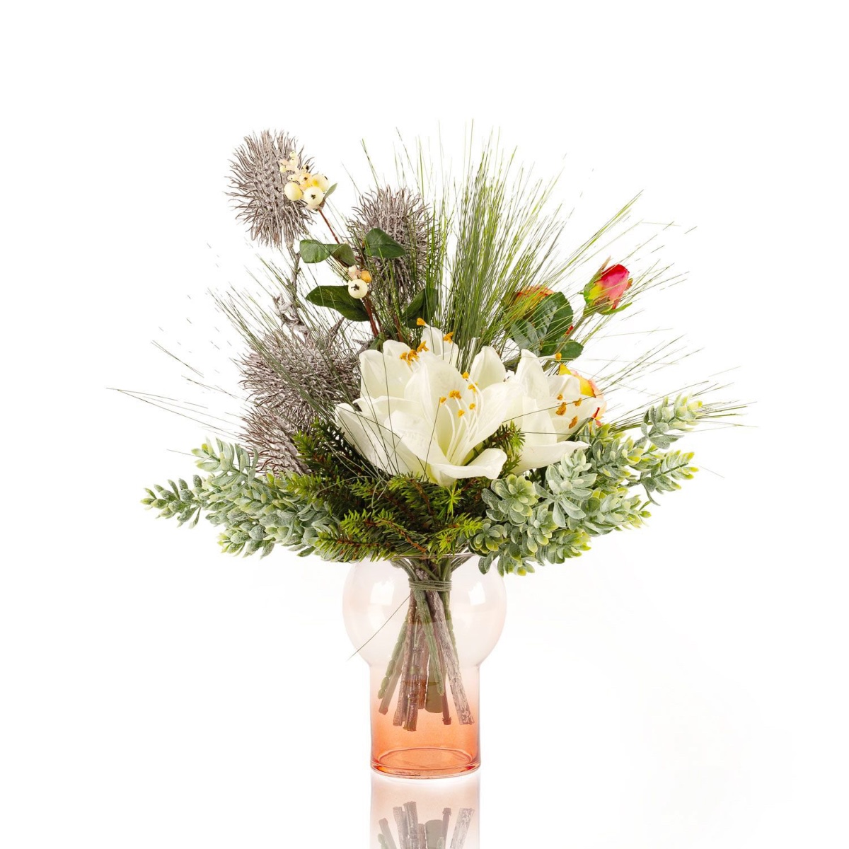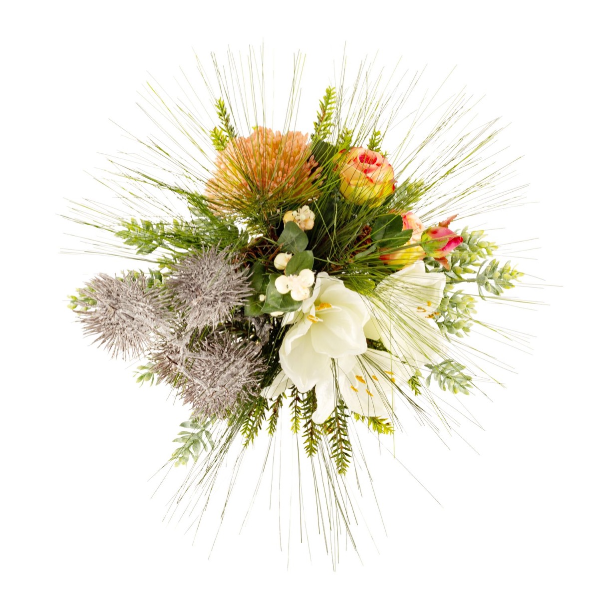 Umělá zimní kytice KEONA, růžovo-bílá, 45cm, Ø40cm