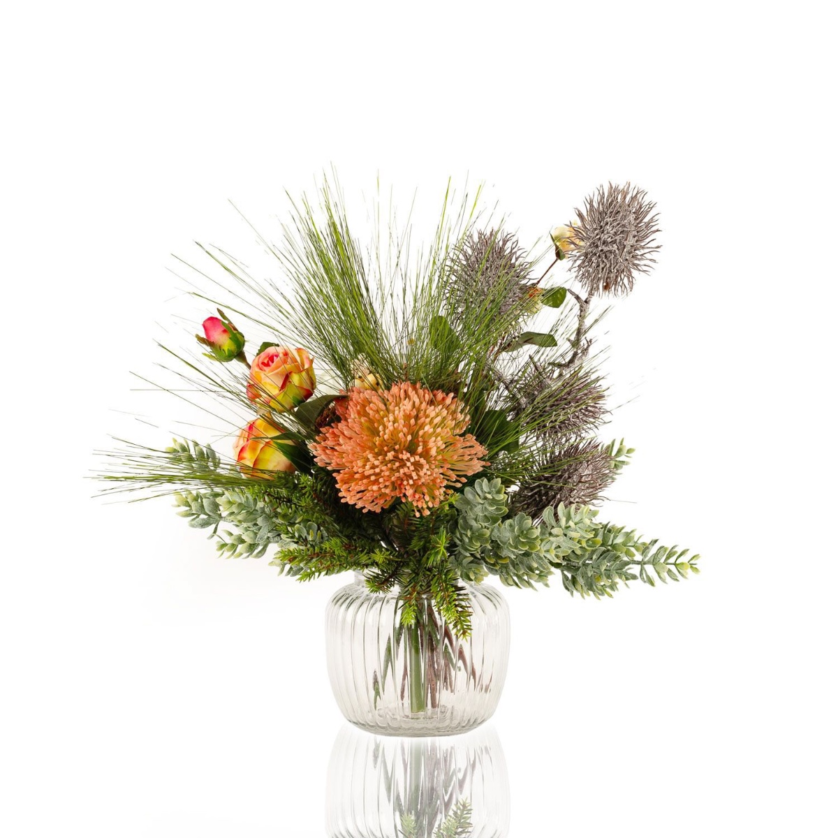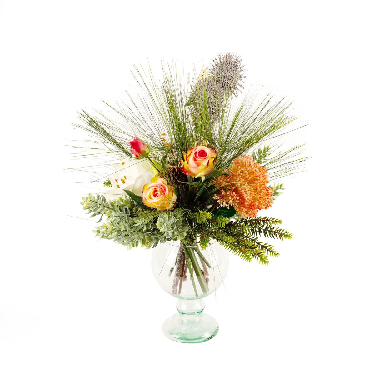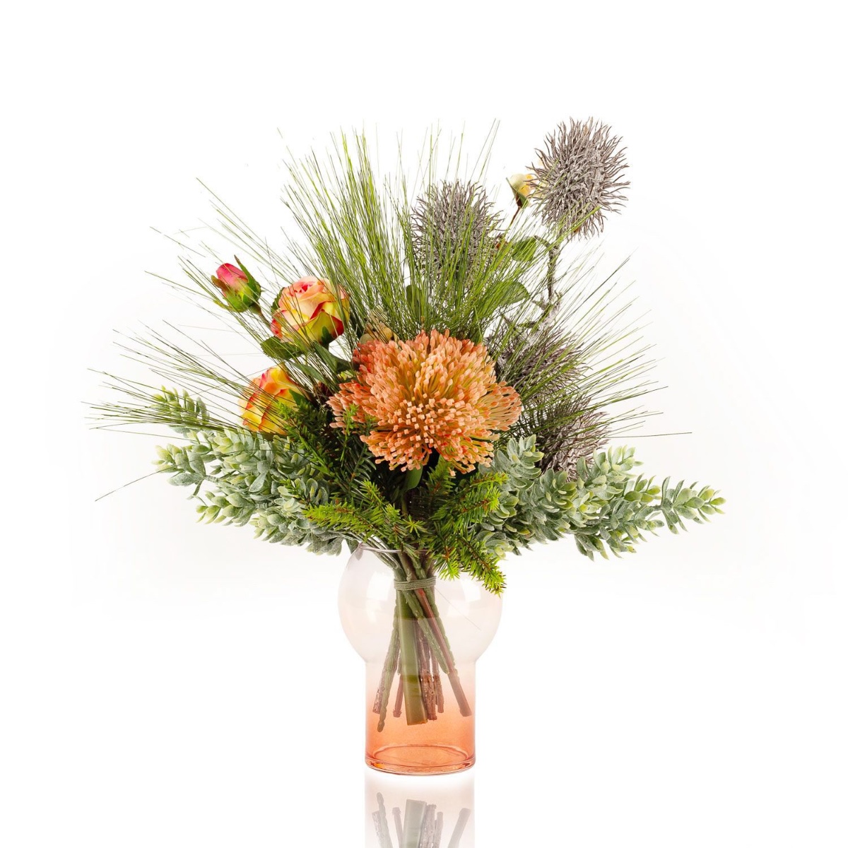 Umělá zimní kytice KEONA, růžovo-bílá, 45cm, Ø40cm
