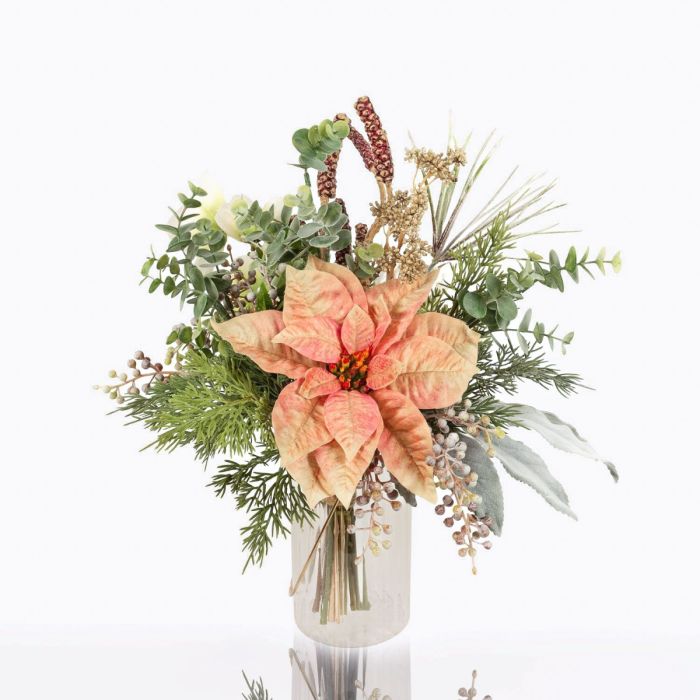 Umělá zimní kytice NOANA, vánoční hvězda, růžovo-bílá, 40cm, Ø40cm