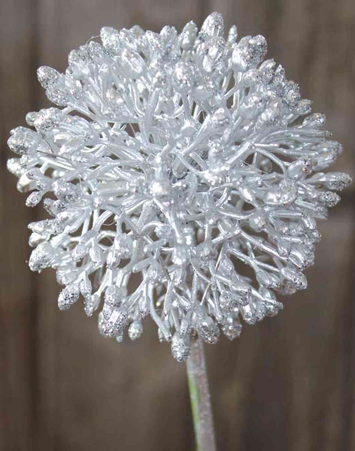 Umělé Allium HELLA, třpytky, stříbro, 45cm, Ø8cm