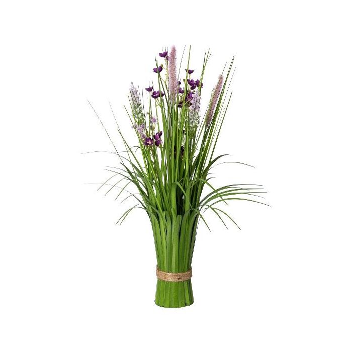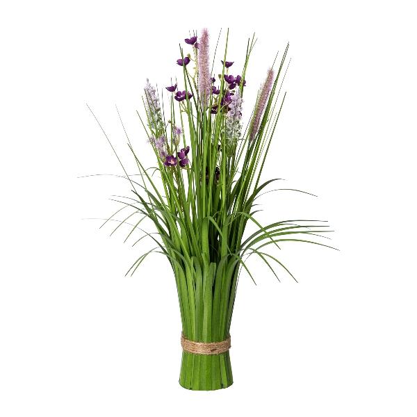 Umělé aranžmá: svazek trávy čističe lamp JIRVO s květy, latami, fialovo-růžová, 50cm