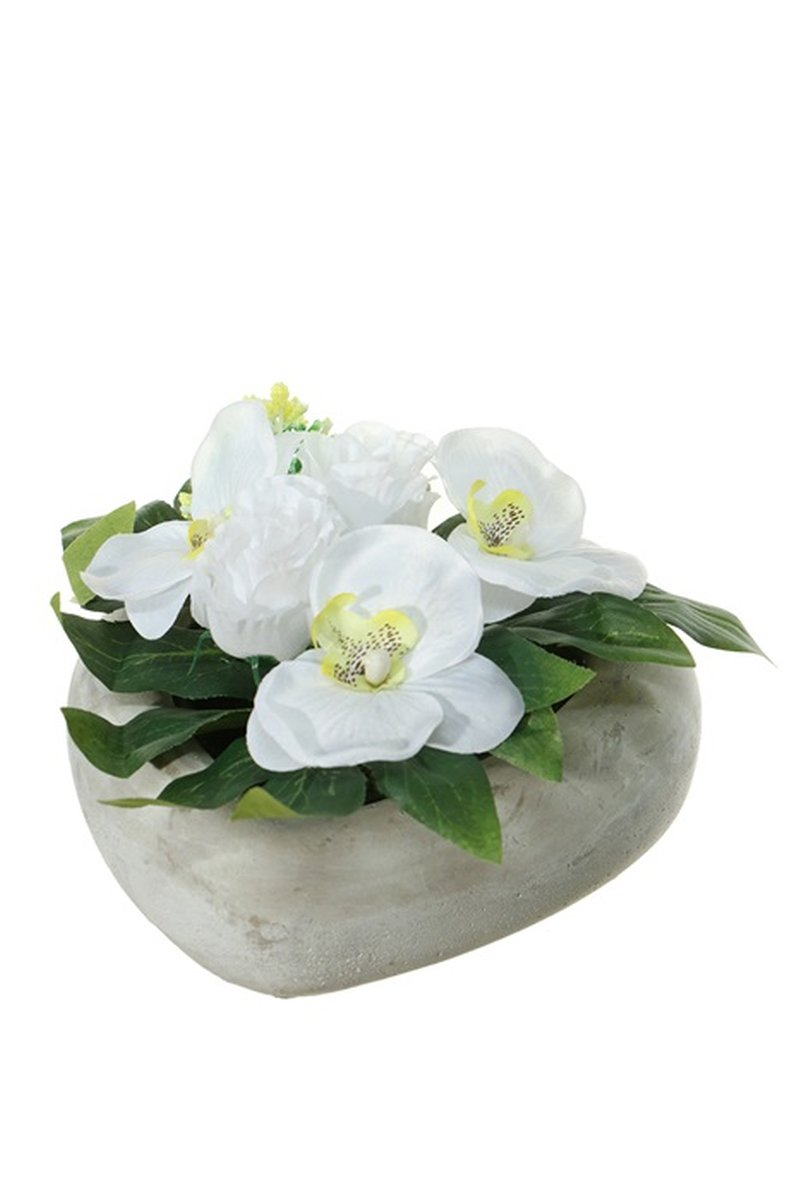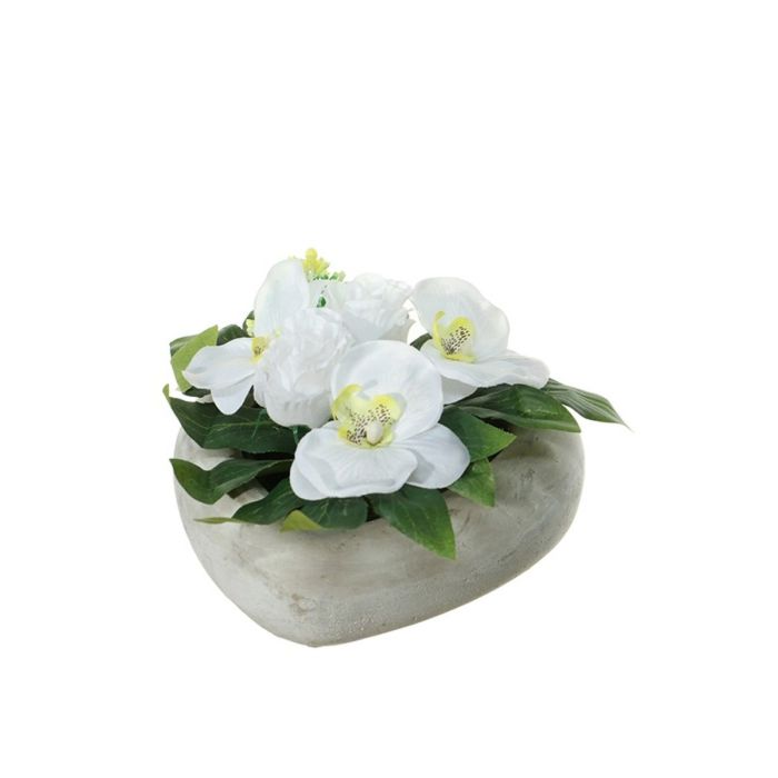 Umělé květinové aranžmá Phalaenopsis orchidej, růže DEON, dekorativní květináč, bílý, 11cm, Ø18cm