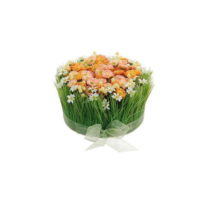 Umělé květinové aranžmá sedmikrásky, tráva HAULANI, oranžovo-bílá, 12cm, Ø20cm