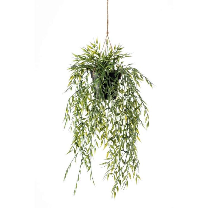 Umělecký bambusový závěsný koš ANDRES v ozdobném květináči, 50cm