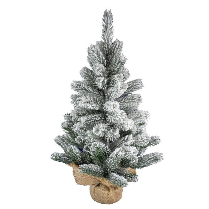 Umělecký vánoční stromek INNSBRUCK, jutový pytel, zasněžený, 75cm, Ø40cm