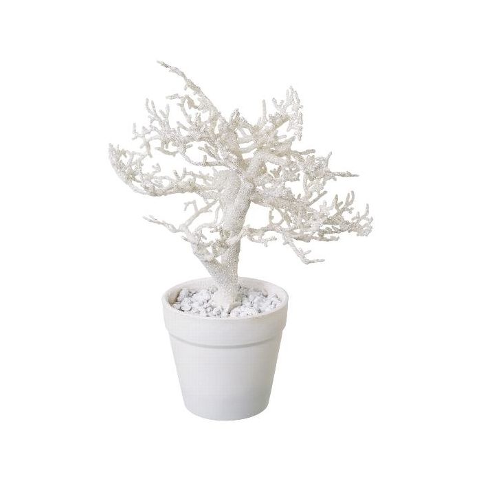 Umělý buk BONKA, bezlistý, dekorativní květináč, bílý, 24cm