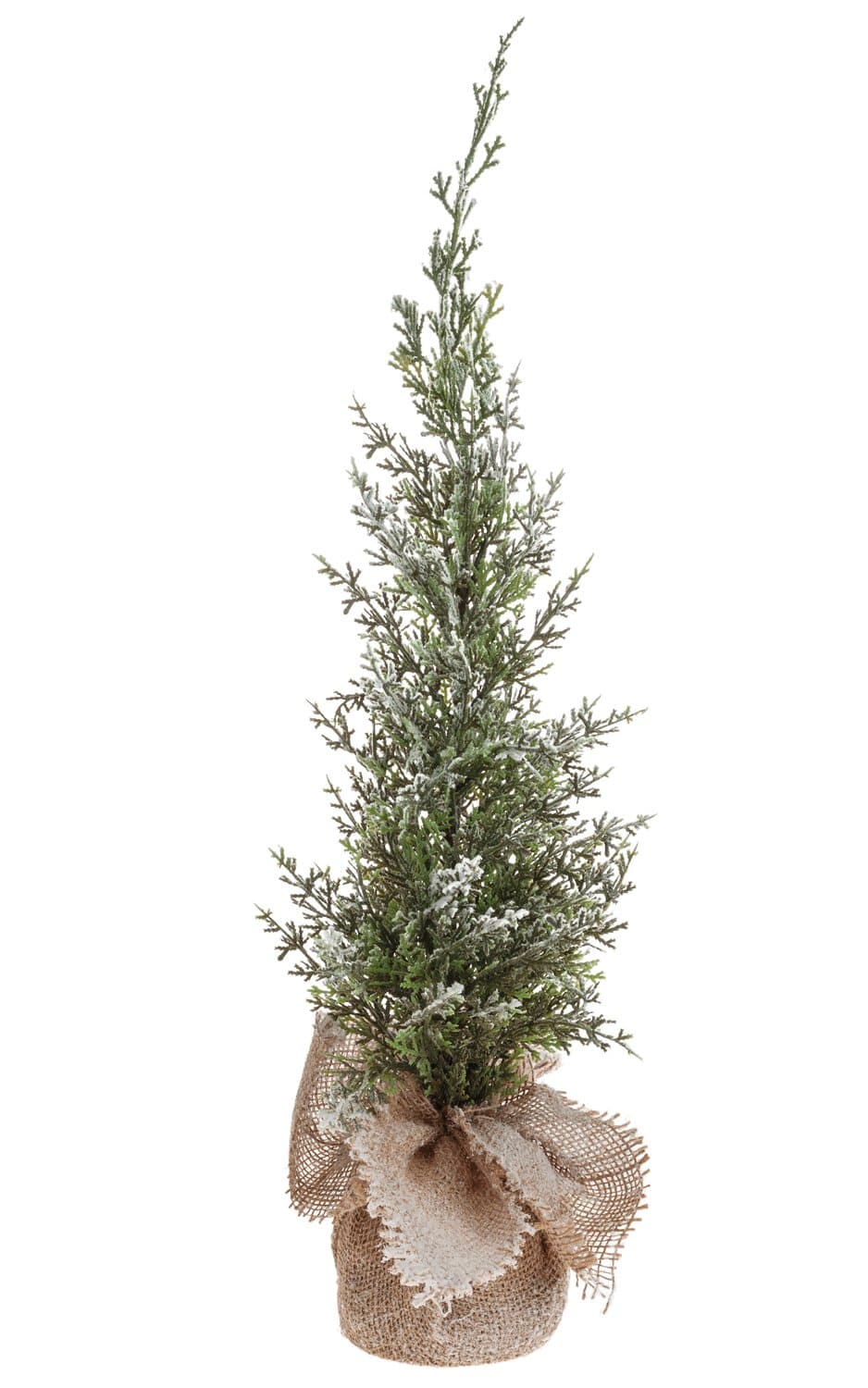 Umělý cedr ANGARA v jutovém pytli, zasněžený, zelenobílý, 60cm