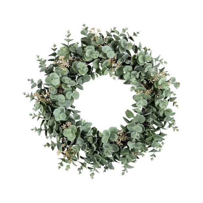 Umělý eukalyptový věnec LEMTI s květy, šedozelený, Ø40cm