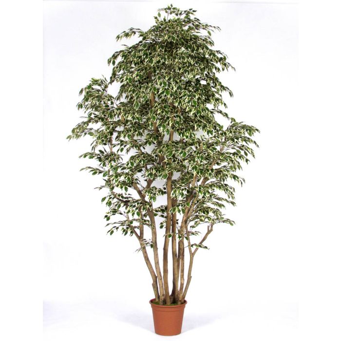 Umělý fíkus Benjamína MIMITIGO, pravý kmen, zelenobílý, 250cm - Vyrobeno v Itálii