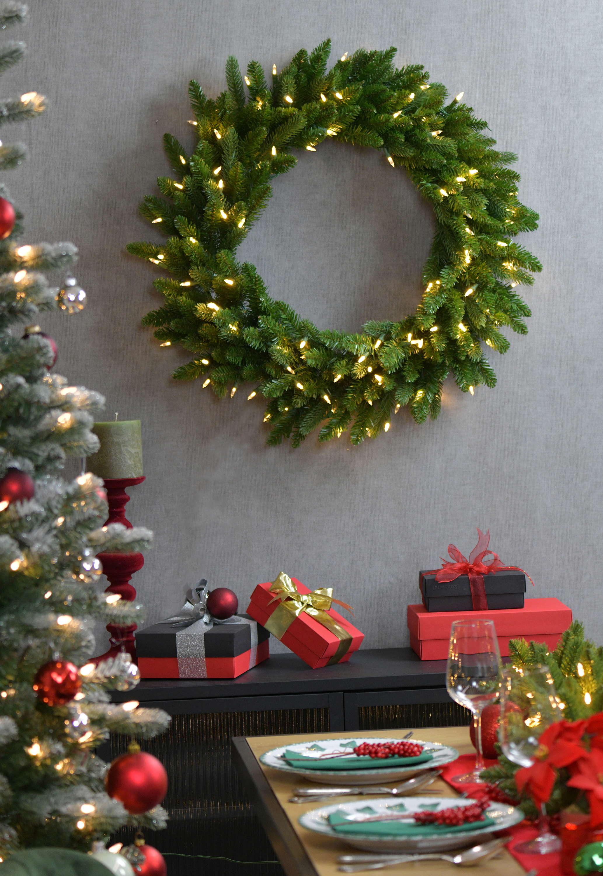 Umělý jedlový věnec AMARILLO, zelený, LED diody, Ø60cm