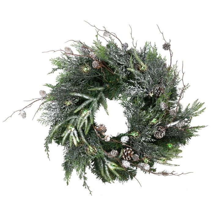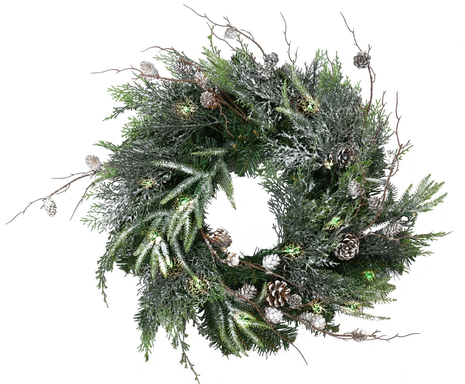 Umělý jedlový věnec STOCKTON, zelený, zasněžený, LED diody, Ø60cm