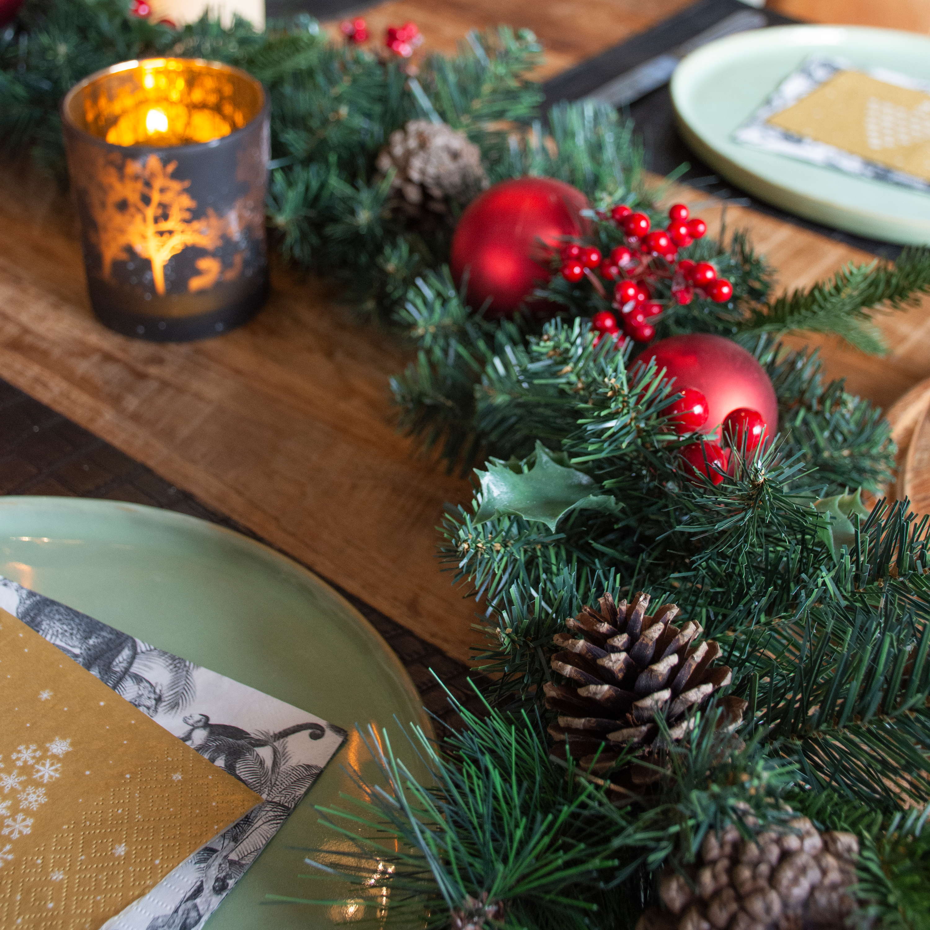 Umělý jedlový věnec VISALIA, zelený, ovoce, 180cm, Ø30cm