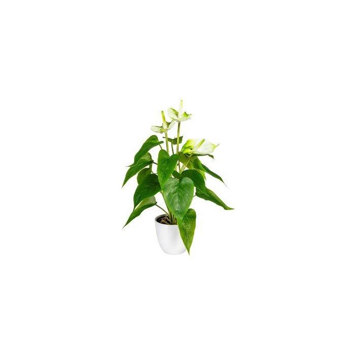 Umělý květ plameňáka PLOVIR v dekorativním květináči, kořeny, bílo-zelený, 40cm