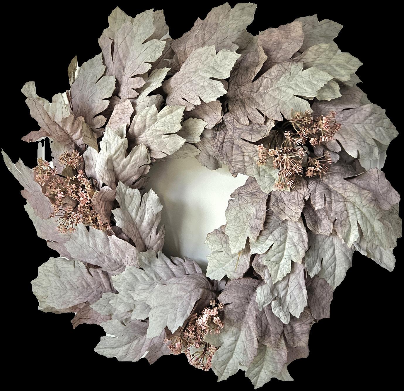 Umělý květinový věnec javor HURSIK, suchý vzhled, šedo-zeleno-růžový, Ø50cm