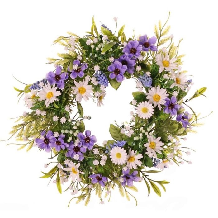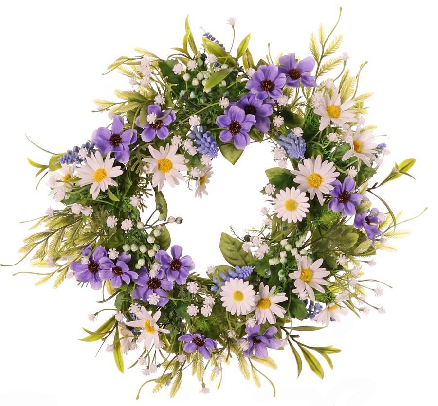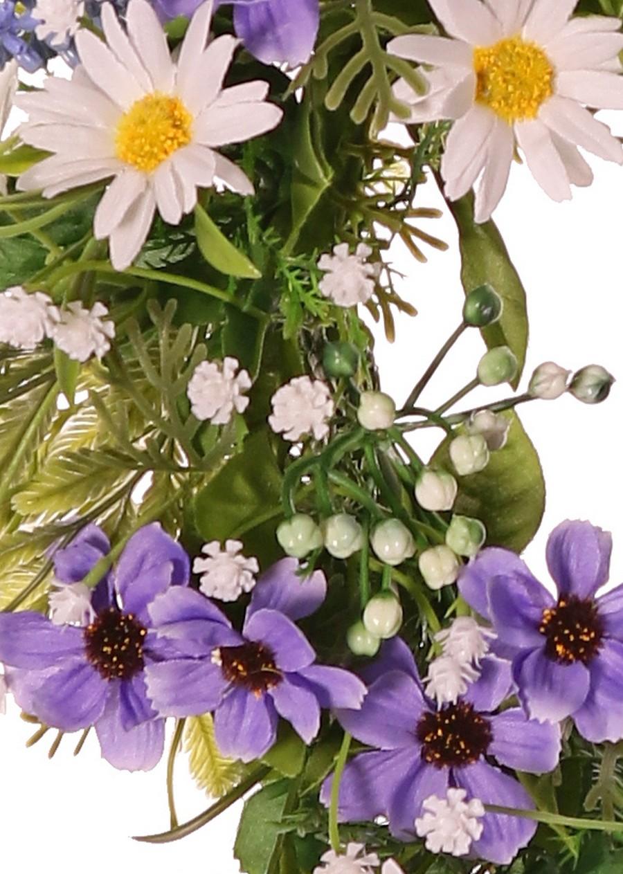 Umělý květinový věnec marguerite Cosmos MAGADI, Muscari, gypsophila, fialovo-bílý, Ø30cm
