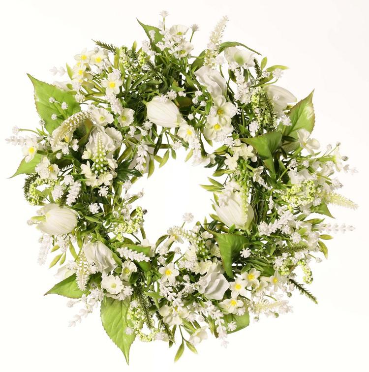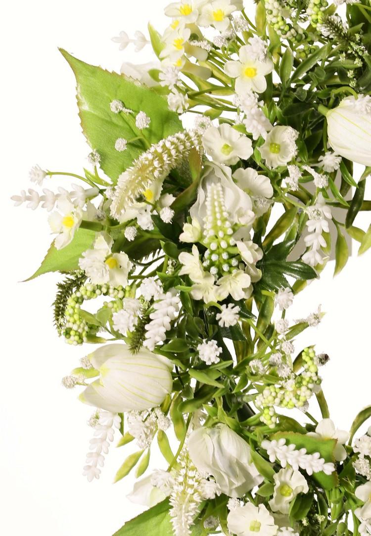 Umělý letní věnec FEDORA, levandule, lathyrus, bílý, Ø30cm