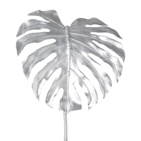 Umělý list Philodendron Monstera Deliciosa MENKIS, stříbrná metalíza, 90cm