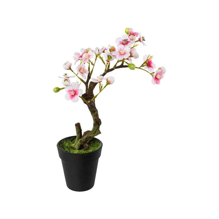 Umělý mandloňový stromek bonsaj OYOS v dekorativním květináči, s květy, růžový, 26cm