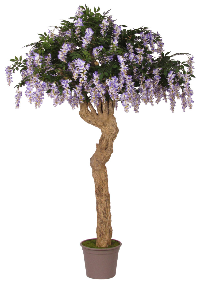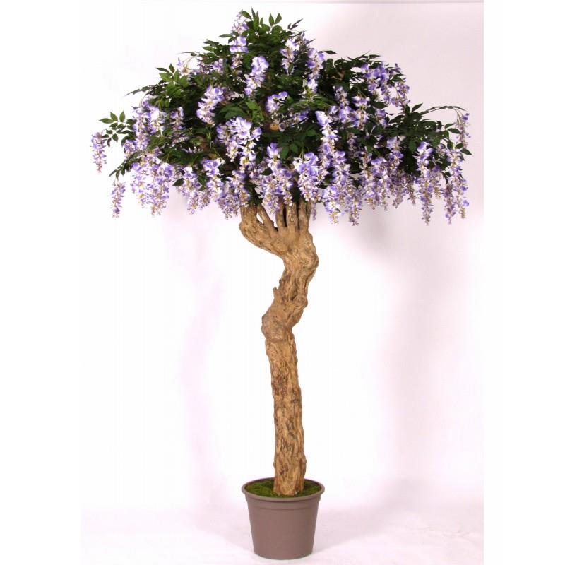 Umělý modrý déšť ANSELMO, pravý kmen, s květy, bílý, 250cm, Ø180cm - Vyrobeno v Itálii