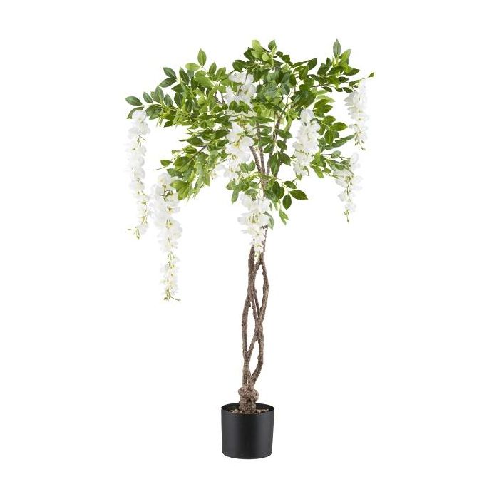Umělý modrý dešťový strom SINKE s květy, tkaný umělý kmen, bílý, 115cm